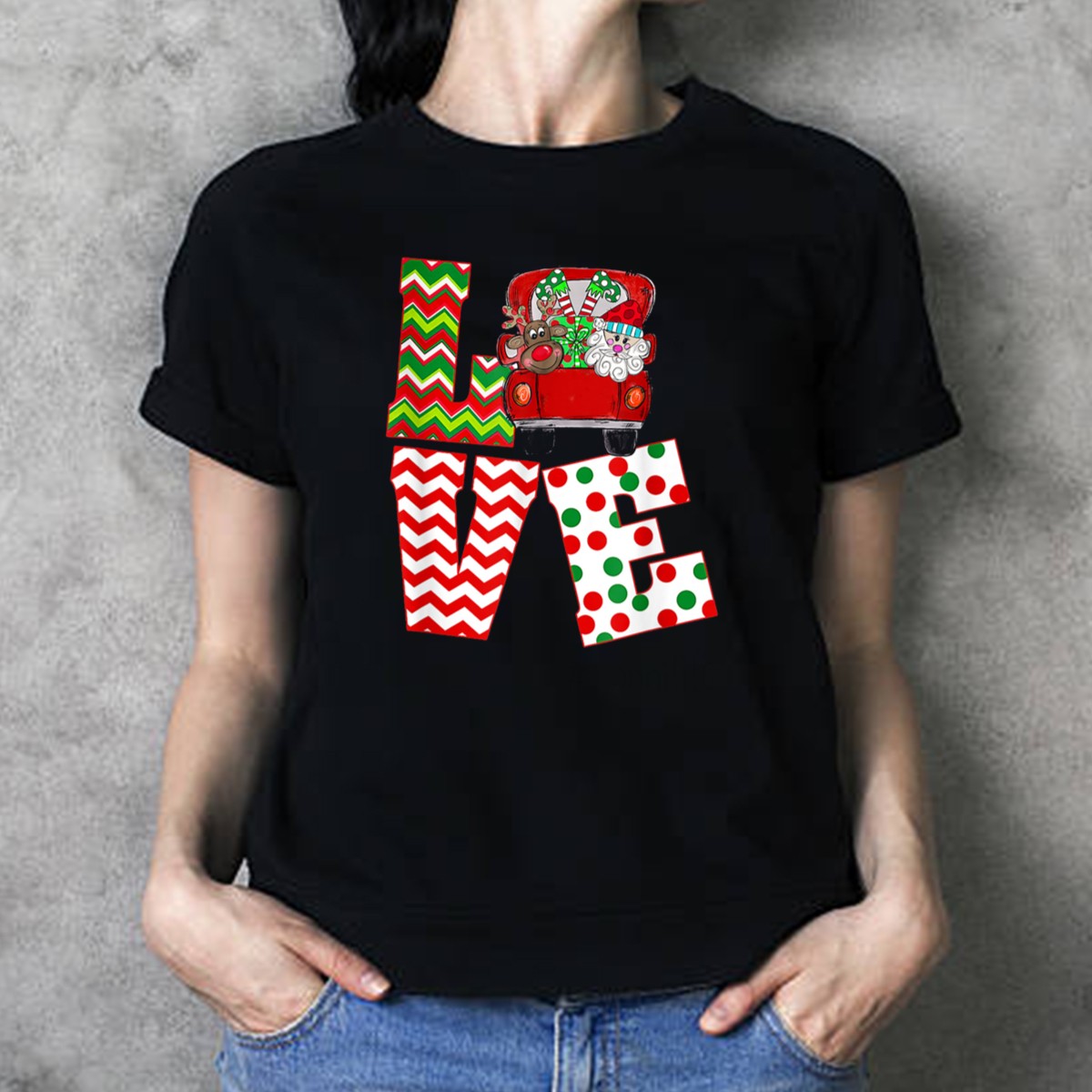 Love Nonni Life Christmas Santa Claus Hat Red Truck Reindeer T-Shirt