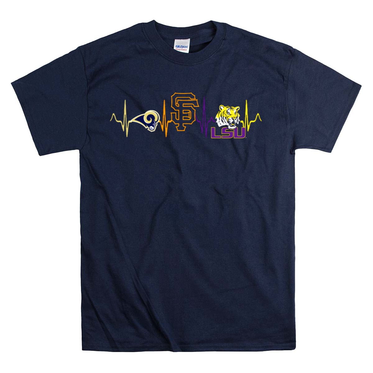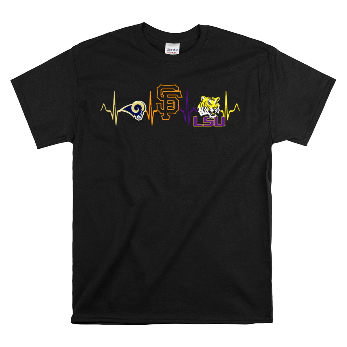 Show your passion for the LSU Tigers with our Love Rams Giants LSU Tigers Heartbeat T-Shirt! This fan-made design is perfect for die-hard supporters who want to showcase their team spirit. Whether you’re at the game, hanging out with friends, or just running errands, this classic tee is a stylish way to express your love for the Tigers. Made in the USA, it combines comfort and durability, making it a go-to choice for all occasions.