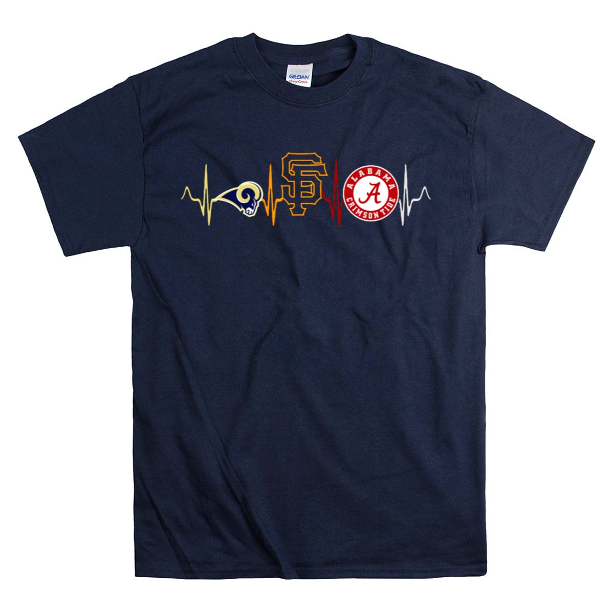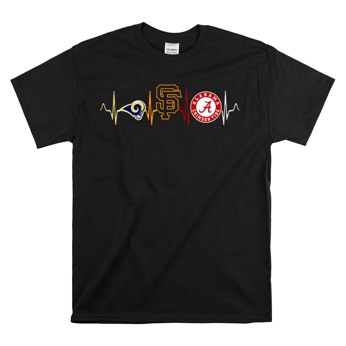 Show your unwavering support for the Alabama Crimson Tide and the San Francisco Giants with our Love Rams Heartbeat T-Shirt. This fan-made design is perfect for die-hard sports enthusiasts who want to display their passion in a stylish and comfortable way. Ideal for casual outings, themed events, or just lounging at home, this shirt is a must-have for any fan looking to showcase their love for their favorite teams with pride.