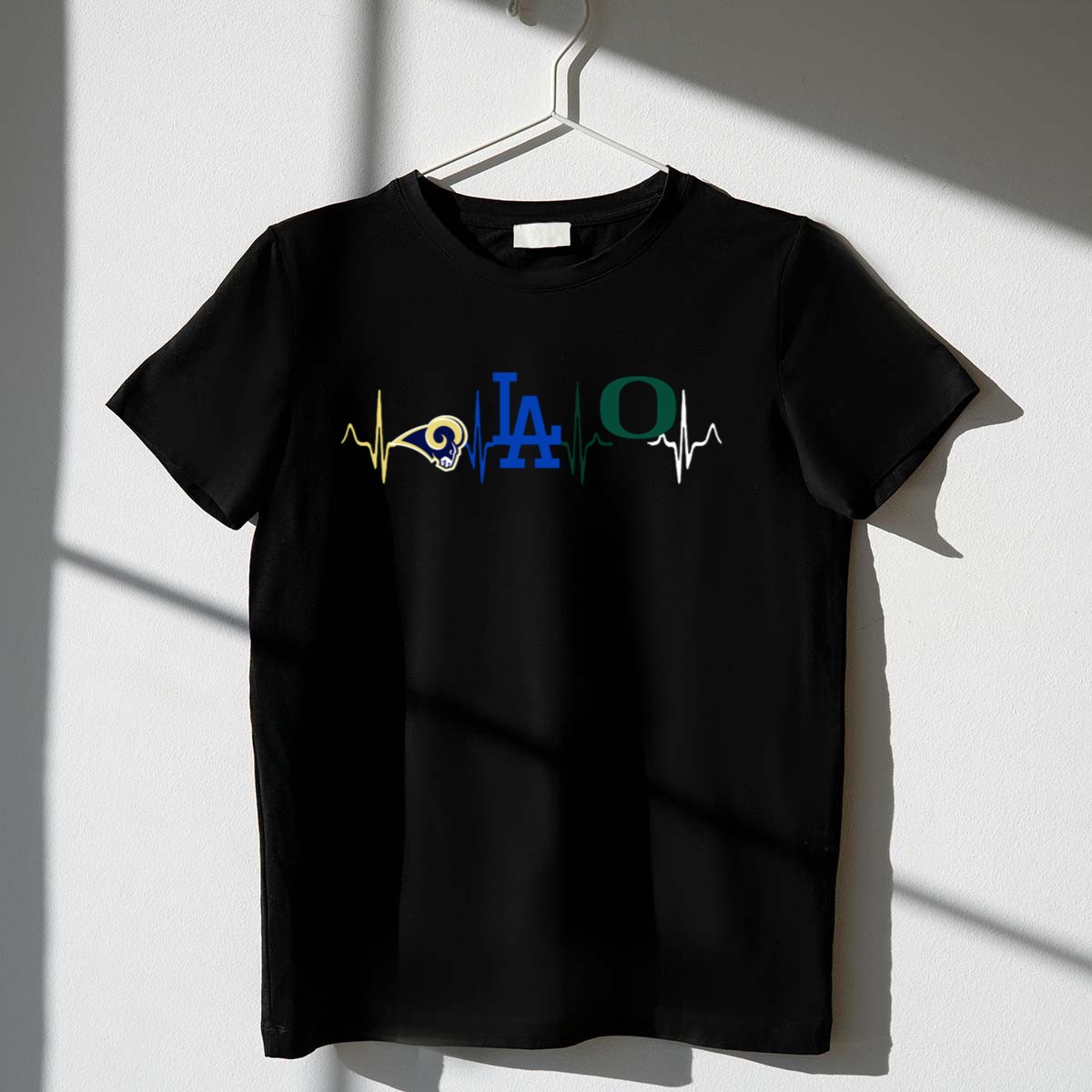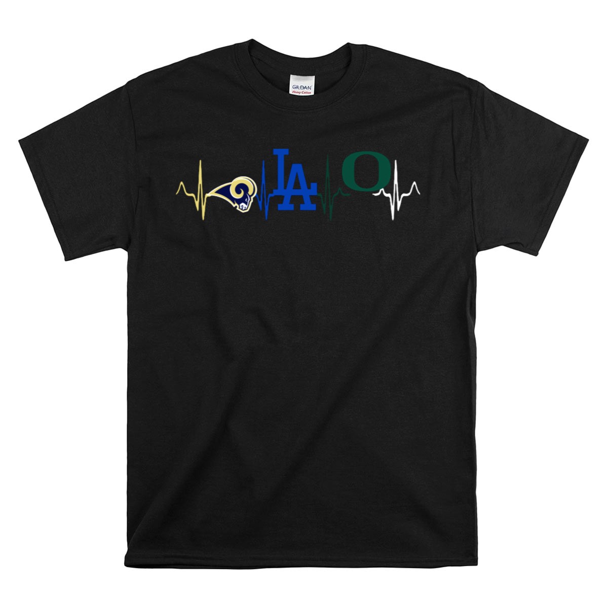 Celebrate your love for the Rams, Dodgers, and Oregon Ducks with our uniquely designed heartbeat T-shirt! Perfect for passionate fans and sports enthusiasts, this shirt brings together your favorite teams in a stylish and comfortable way. Whether you’re cheering from the stands, attending themed events, or just enjoying a casual day out, this T-shirt is a must-have addition to your wardrobe. Made with care in the USA, it perfectly combines fandom with fashion!