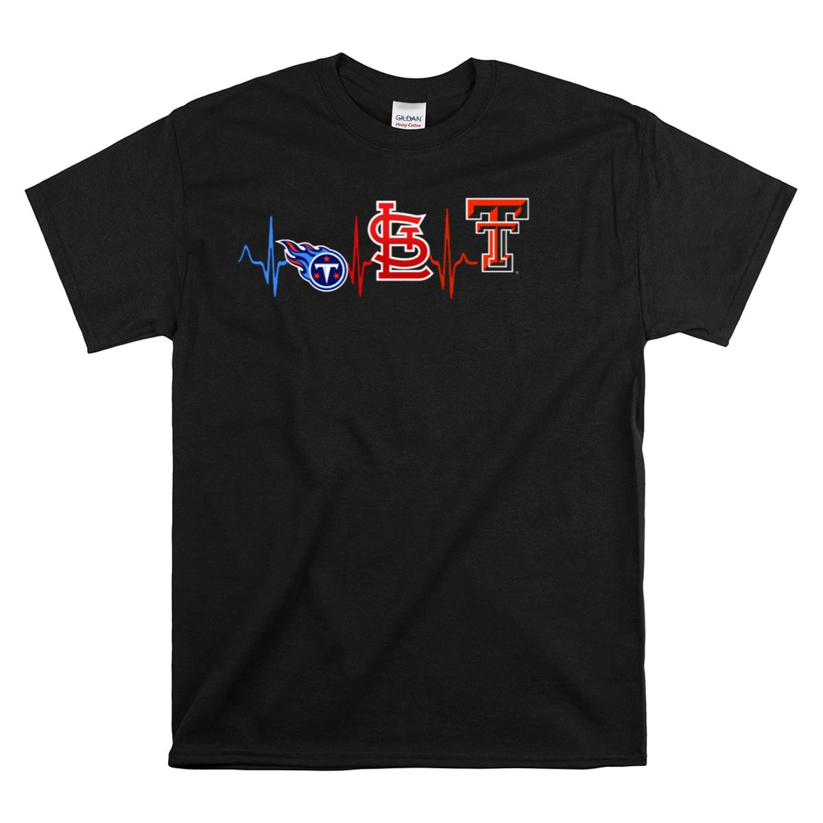 Love Titans St Louis Cardinals Texas Tech Red Raiders Heartbeat T-Shirt