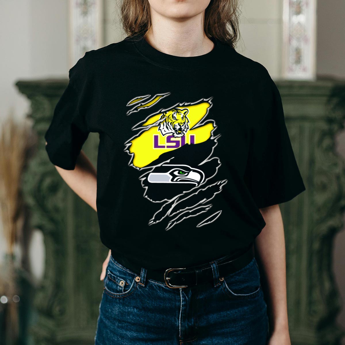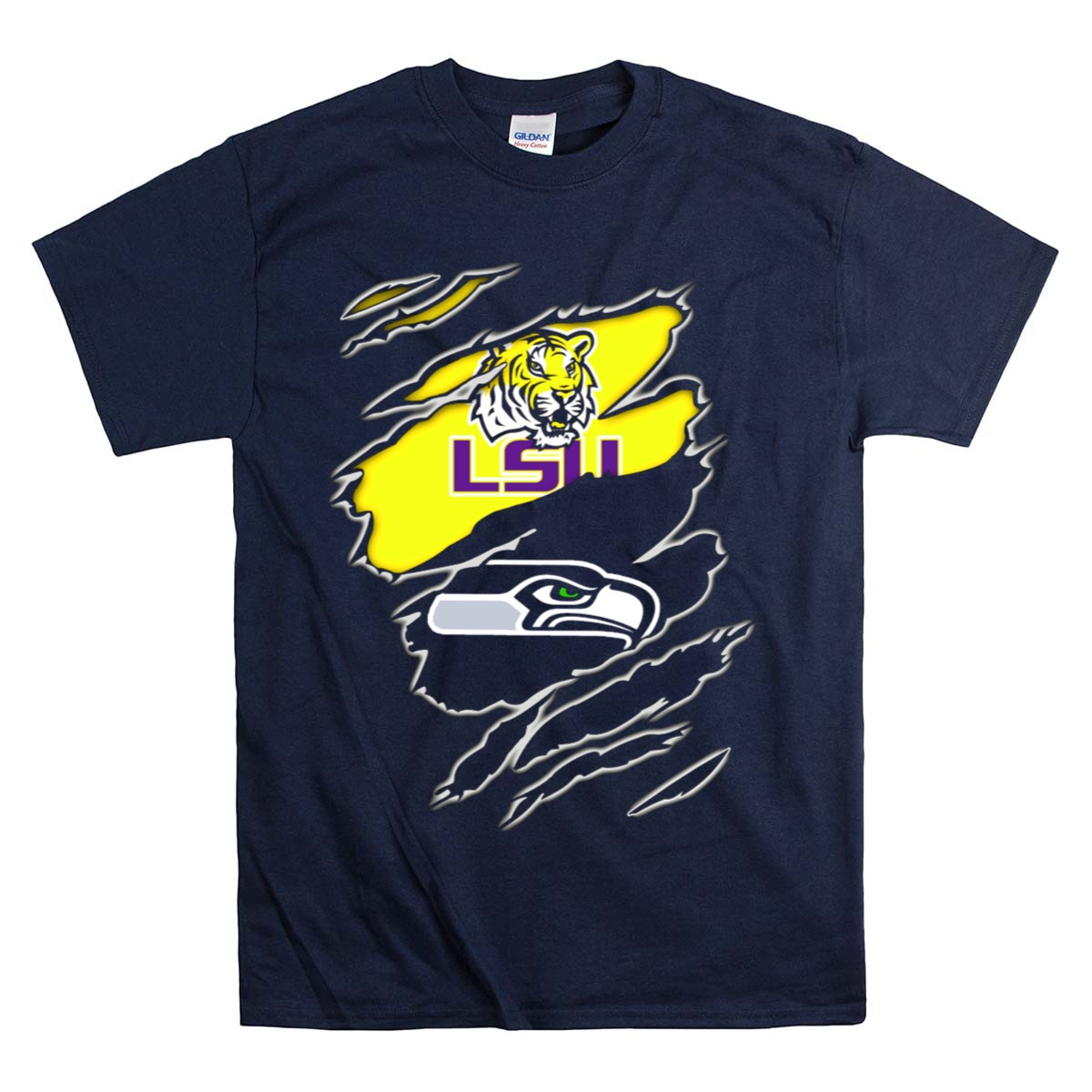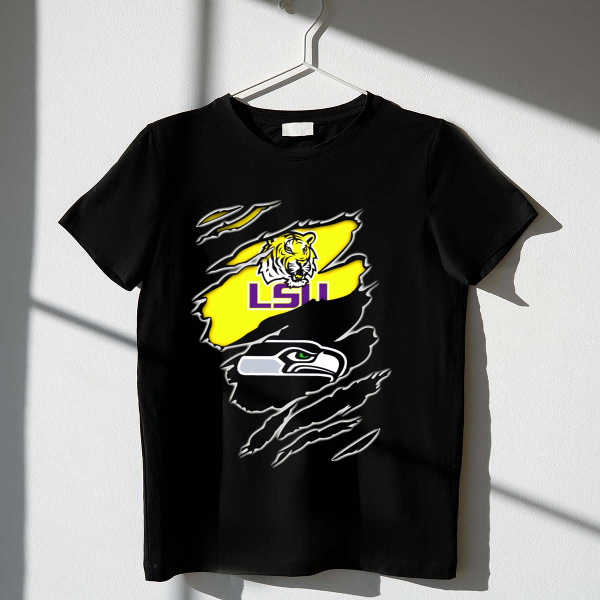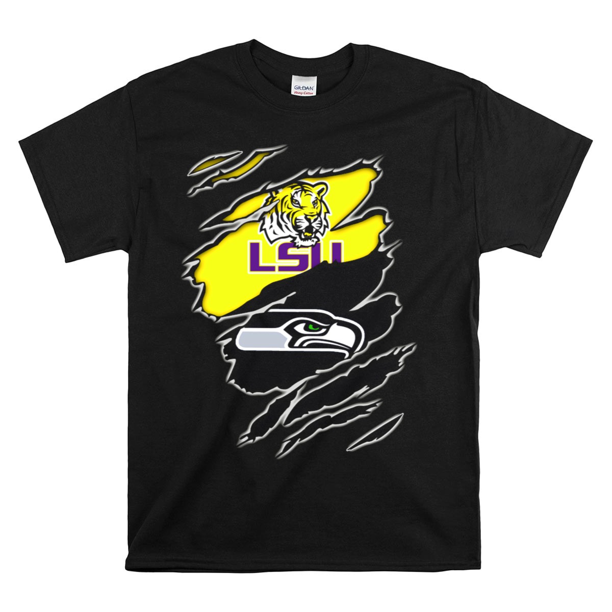 Show off your fierce spirit with the LSU Seahawks Tiger Claw Rips T-Shirt, a must-have for any fan looking to bring a bold statement to their casual wardrobe. This shirt is perfect for game days, themed events, or just lounging around while showcasing your pride for the LSU Tigers. Made with a unique, eye-catching design that is fan-made and printed in the USA, this tee combines comfort with style for an unbeatable combination.