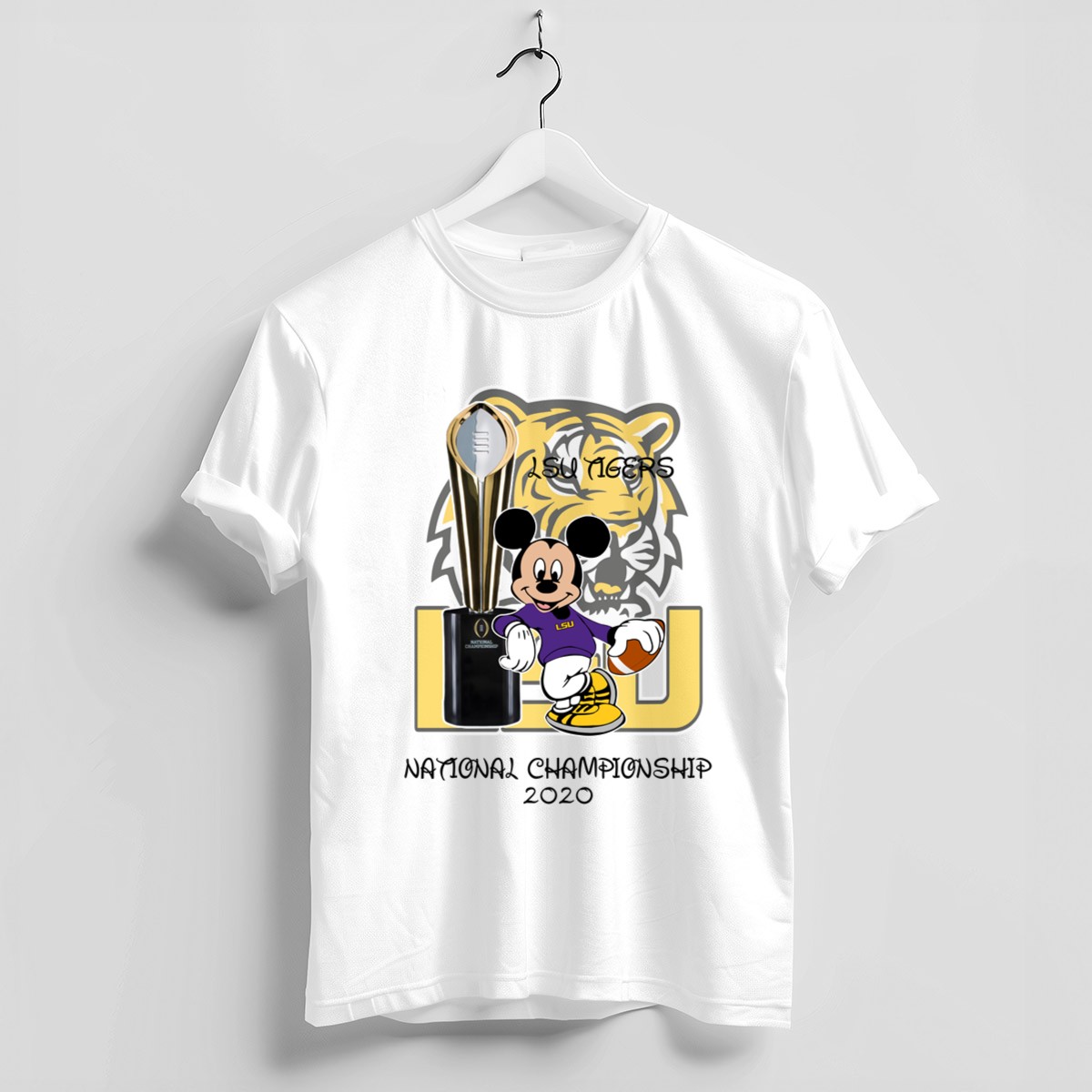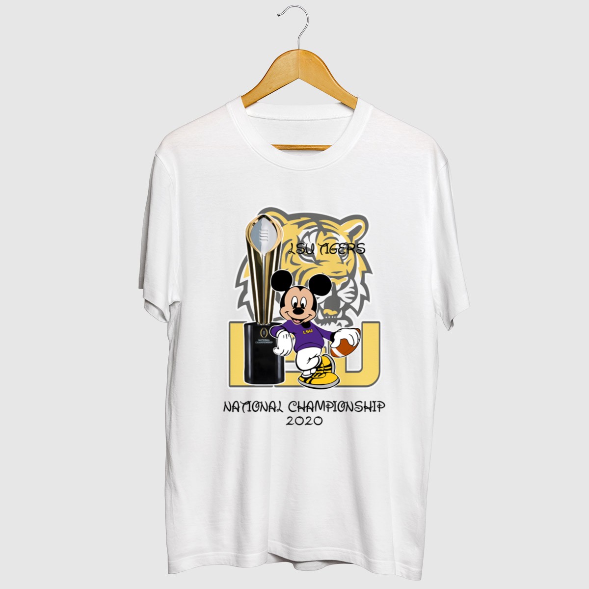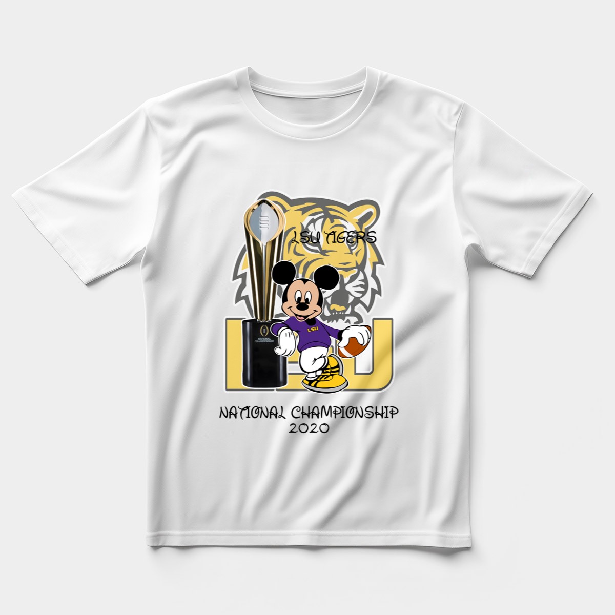 Show your team spirit with our LSU Tiger Mickey Mouse National Championship 2020 Shirt! This fan-made design combines the beloved Mickey Mouse with the fierce LSU Tigers, making it the perfect choice for die-hard fans and Disney lovers alike. Ideal for casual wear, themed events, or daily outings, this classic tee celebrates your love for both LSU and the magic of Mickey. Proudly printed in the USA, it ensures you stand out while showcasing your team pride in style!