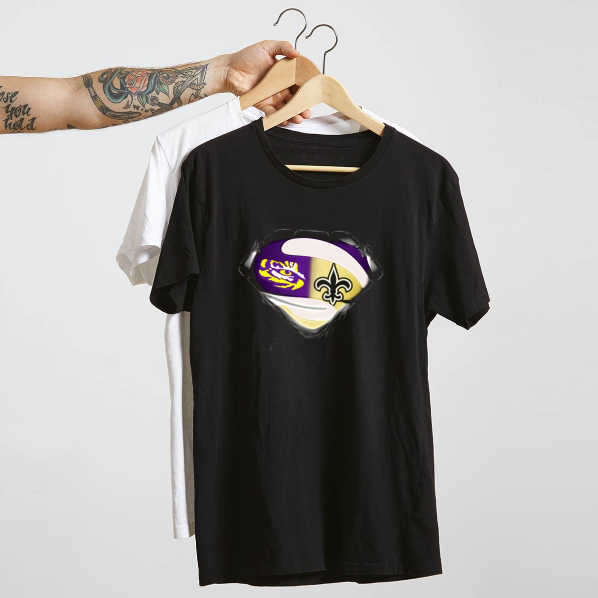 Show your passion for Louisiana sports with the LSU Tigers and New Orleans Saints Fleur De Lis Rip Effect T-Shirt! This fan-made design is perfect for die-hard supporters who want to showcase their team spirit in a stylish and comfortable way. Ideal for casual outings, themed events, or simply lounging around, this tee brings together iconic elements from two of Louisiana’s favorite teams, making it a must-have for any sports enthusiast. Plus, with its classic fit and soft cotton material, you’ll not only look great but feel great too!