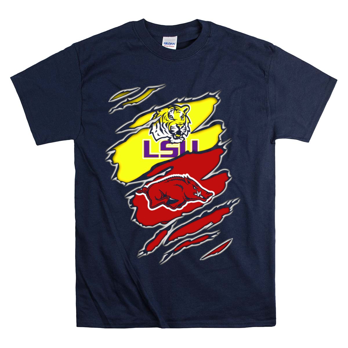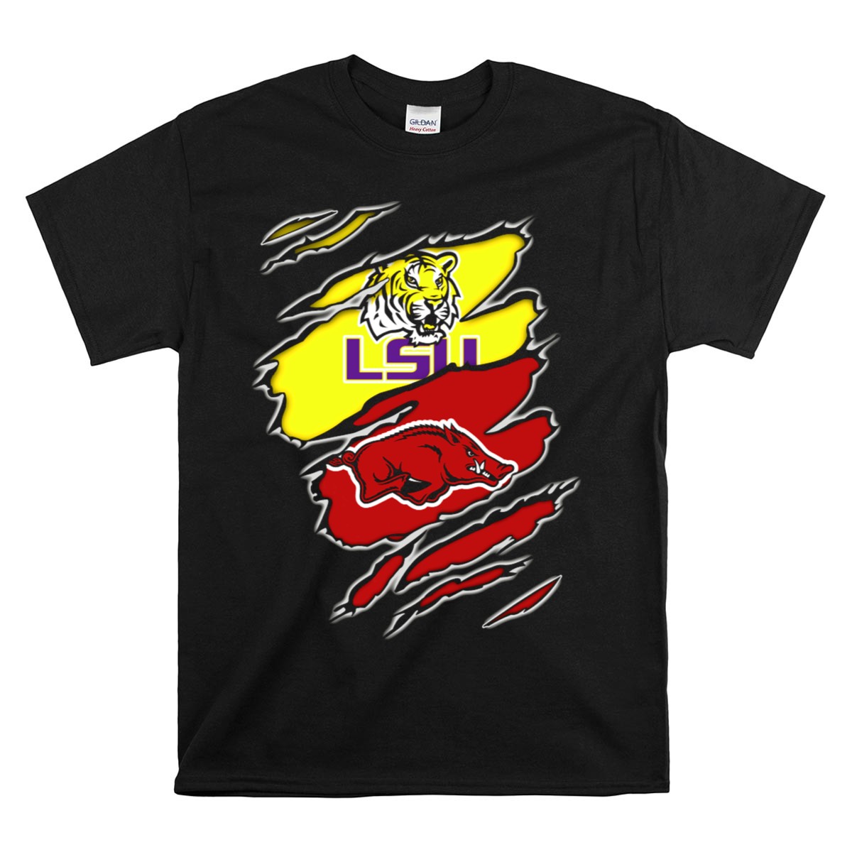 Show your fierce loyalty to the LSU Tigers with our fan-made Arkansas Razorbacks Rivalry Claw Marks T-Shirt! This striking design is perfect for dedicated fans who want to showcase their team spirit during casual outings, themed events, or daily wear. Made in the USA, this shirt combines comfort and style, making it an essential addition to any LSU supporter’s wardrobe.