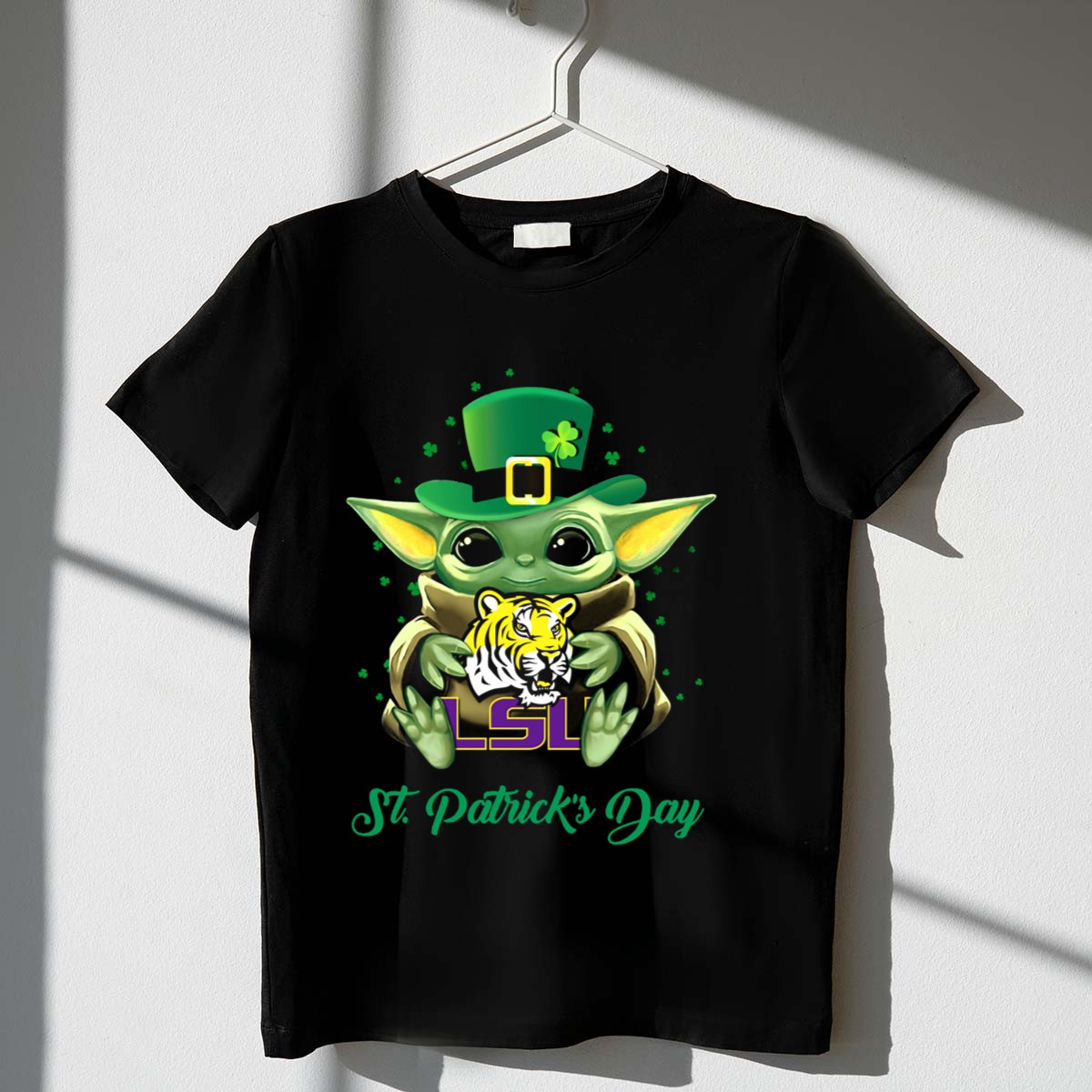 Celebrate St. Patrick’s Day with a twist of fun and fandom in our LSU Tigers Baby Yoda T-Shirt! This fan-made design perfectly blends the beloved Baby Yoda character with the spirit of LSU Tigers, making it an ideal choice for die-hard fans and casual wearers alike. Whether you’re heading to a themed event, a casual gathering, or just enjoying daily life, this shirt is sure to turn heads and spark conversations. Printed in the USA, it offers a unique way to show your team spirit while keeping it playful.