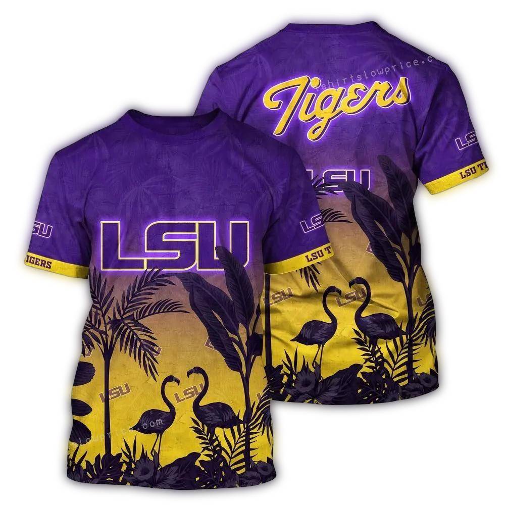Lsu Tigers Flamingo Floral Vintage All-Over Print T-Shirt