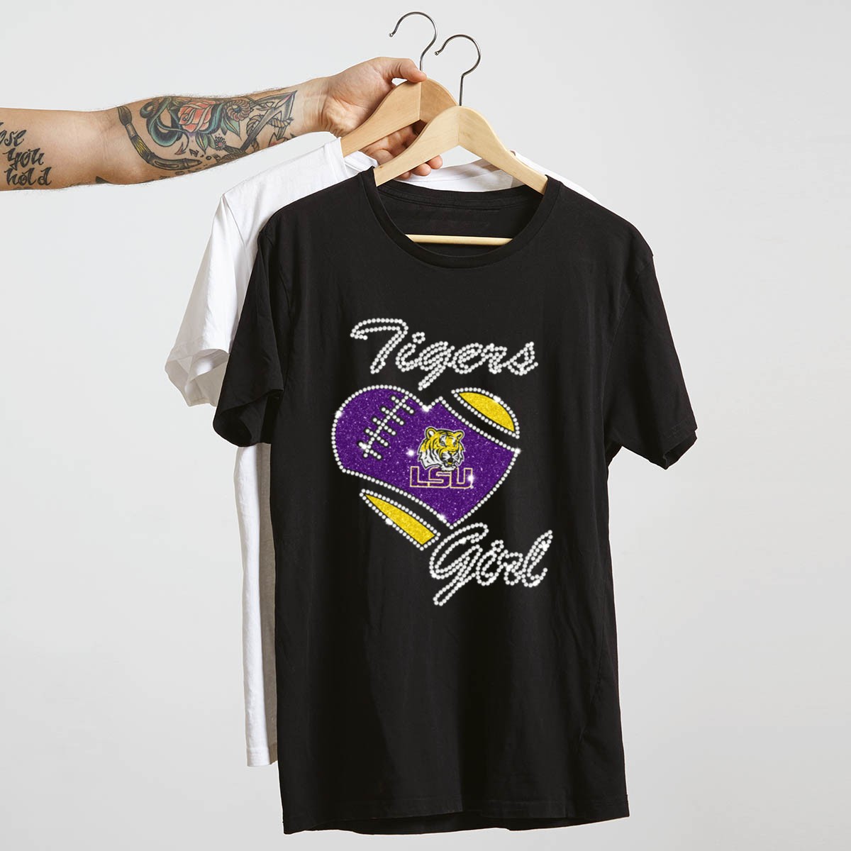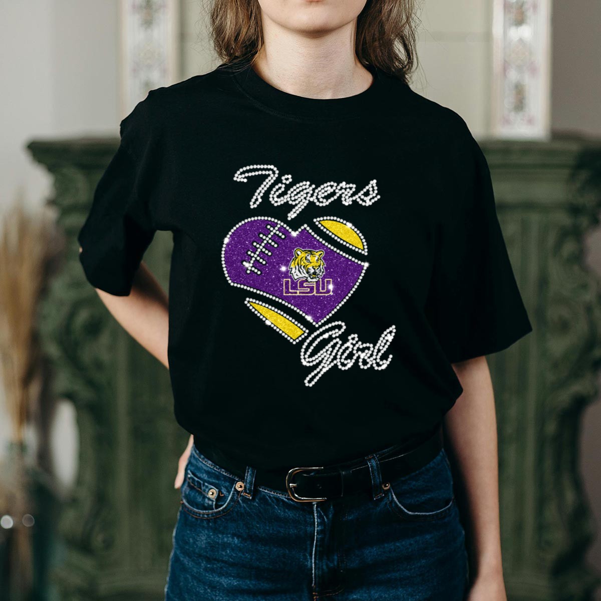 Show your love for the LSU Tigers with this charming Girl Heart Football Sparkle Design T-shirt! Perfect for passionate fans, this shirt is ideal for casual outings, themed events, or simply cheering on your favorite team from home. Crafted with a fan-made design and printed right here in the USA, it combines style, comfort, and team spirit for a truly unique addition to your wardrobe.