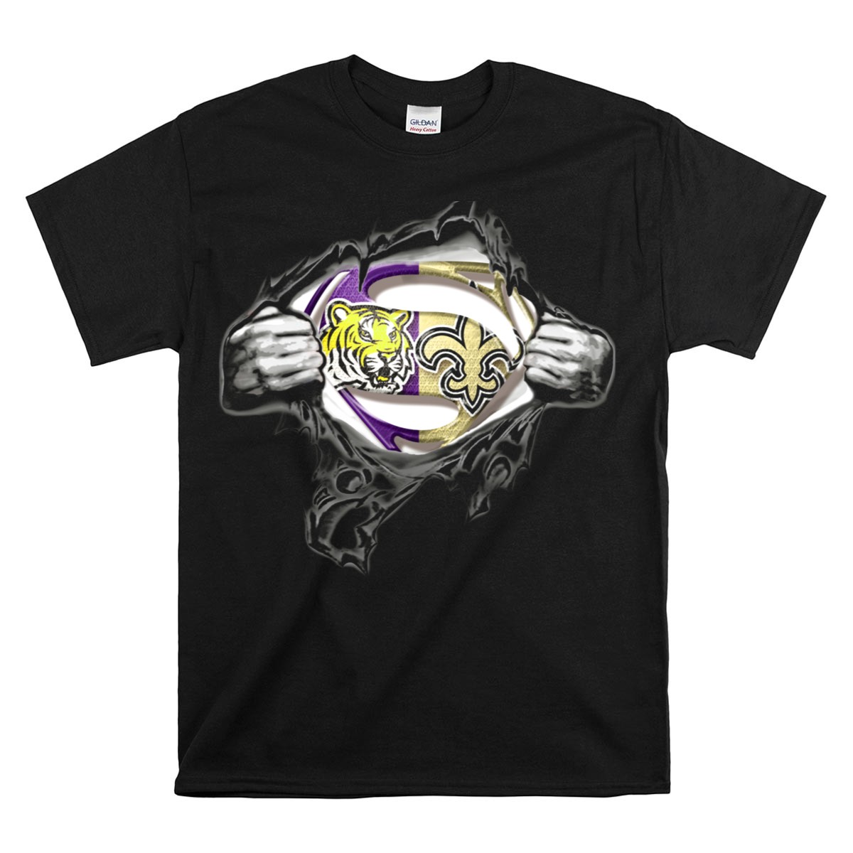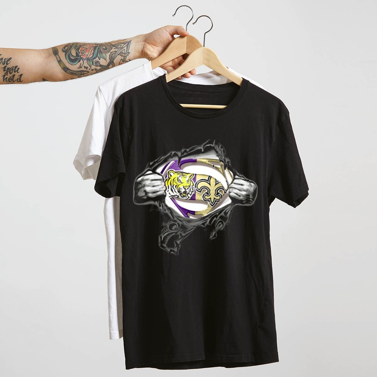 Show your unwavering support for both the LSU Tigers and the New Orleans Saints with our Super Man T-Shirt, designed for true fans who love to represent their teams in style. This fan-made graphic tee is perfect for casual outings, themed events, or daily wear, making it a versatile addition to any wardrobe. Crafted with care and printed in the USA, this shirt combines comfort with a striking design that celebrates your team spirit.