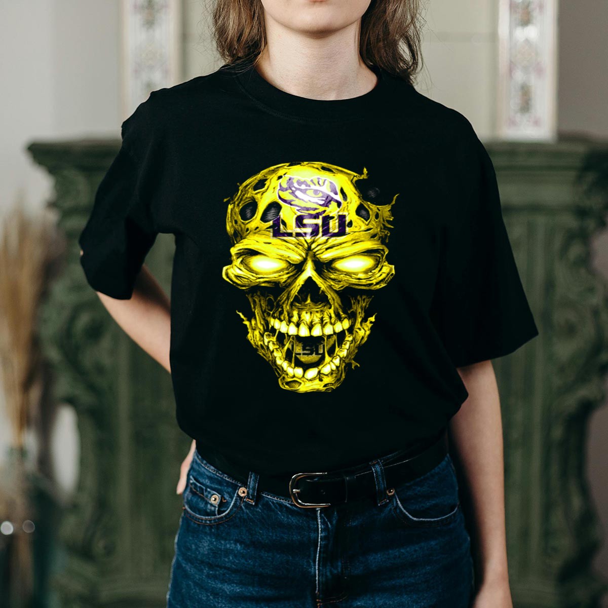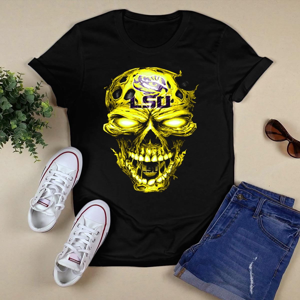 Be the first to review “Lsu Tigers Skull Graphic With Logo And Fierce Glowing Eyes T-Shirt”