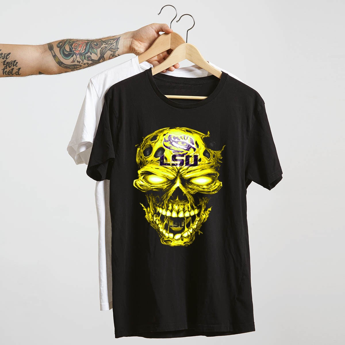 Show your fierce loyalty to the LSU Tigers with our striking Skull Graphic T-Shirt, designed for true fans who want to make a statement. Perfect for game days, casual outings, or themed events, this shirt features a unique and bold skull graphic that showcases the iconic LSU logo alongside glowing eyes, capturing the spirit of the Tigers. Made for comfort and style, this fan-made design is printed right here in the USA, making it a must-have for any dedicated supporter.