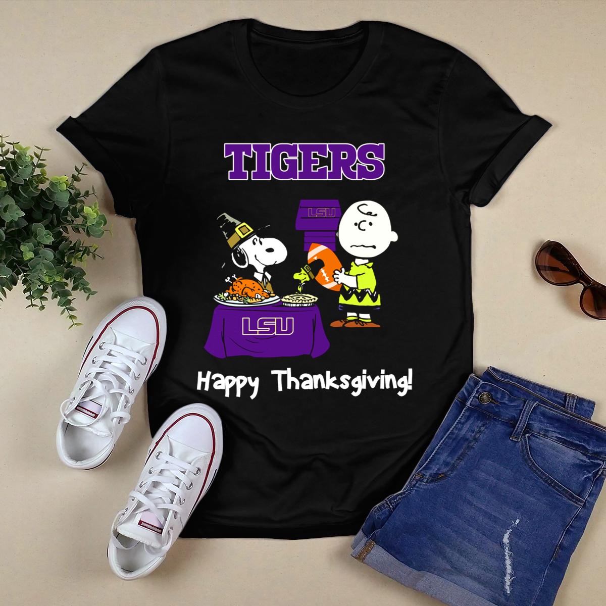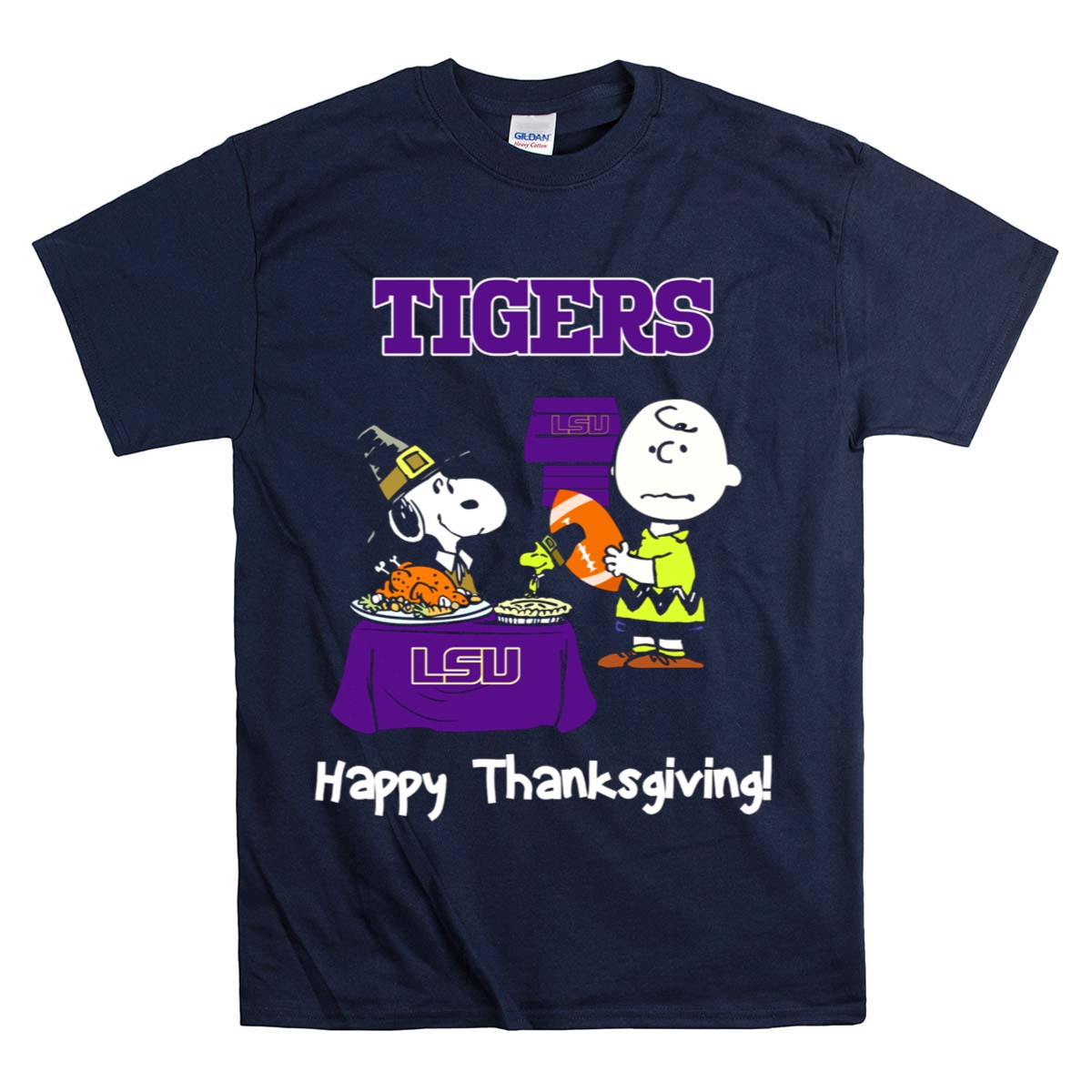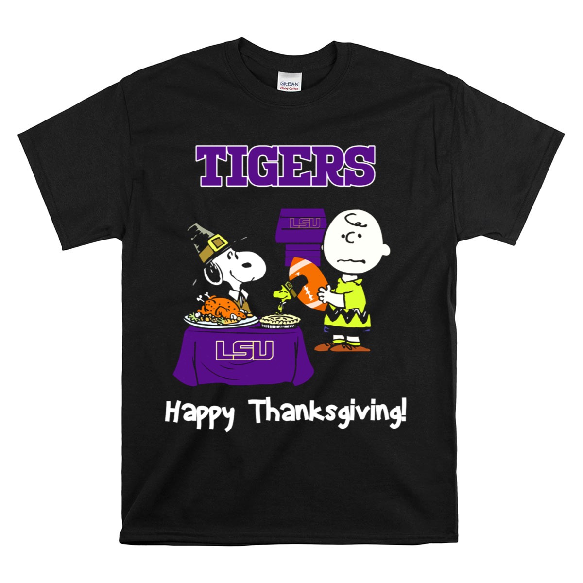 Show your team spirit with our LSU Tigers Snoopy and Charlie Brown Thanksgiving Football T-Shirt! This unique fan-made design combines the beloved characters of Snoopy and Charlie Brown with the excitement of LSU football, making it a perfect choice for fans of all ages. Ideal for casual wear, themed events, or daily outings, this t-shirt is not just a stylish statement but also a celebration of both your love for the Tigers and a classic holiday tradition. Crafted for comfort and durability, it’s printed right here in the USA!