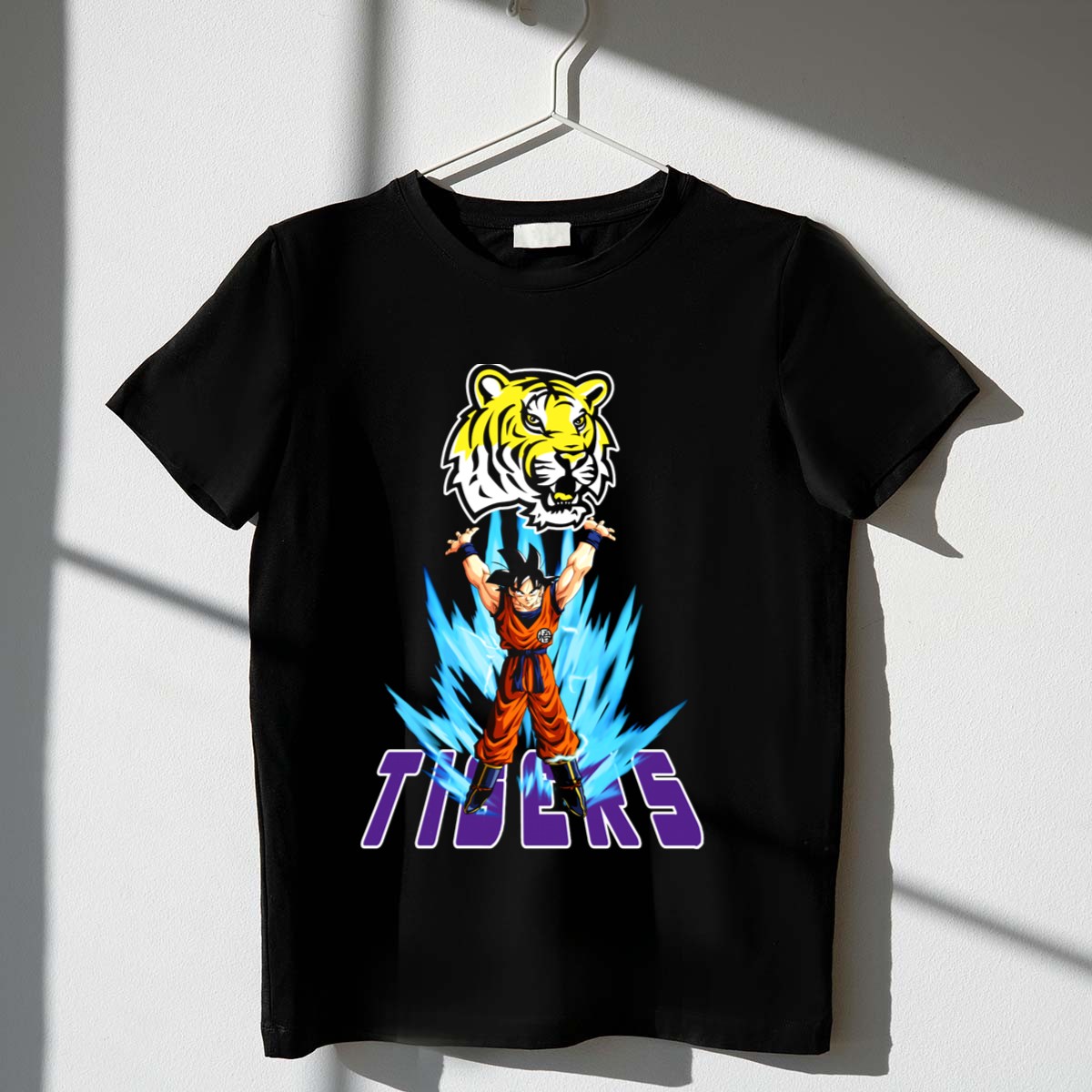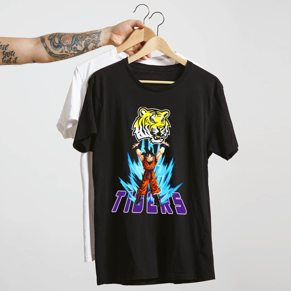 Show your passion for the LSU Tigers and your love for anime with our exclusive LSU Tigers Super Saiyan Goku Power Up T-Shirt! This unique fan-made design combines the spirited energy of college football with the epic world of Dragon Ball, making it perfect for dedicated fans and anime lovers alike. Whether you’re cheering on your team at the stadium, attending a themed event, or just enjoying a casual day out, this shirt is a must-have for any occasion.