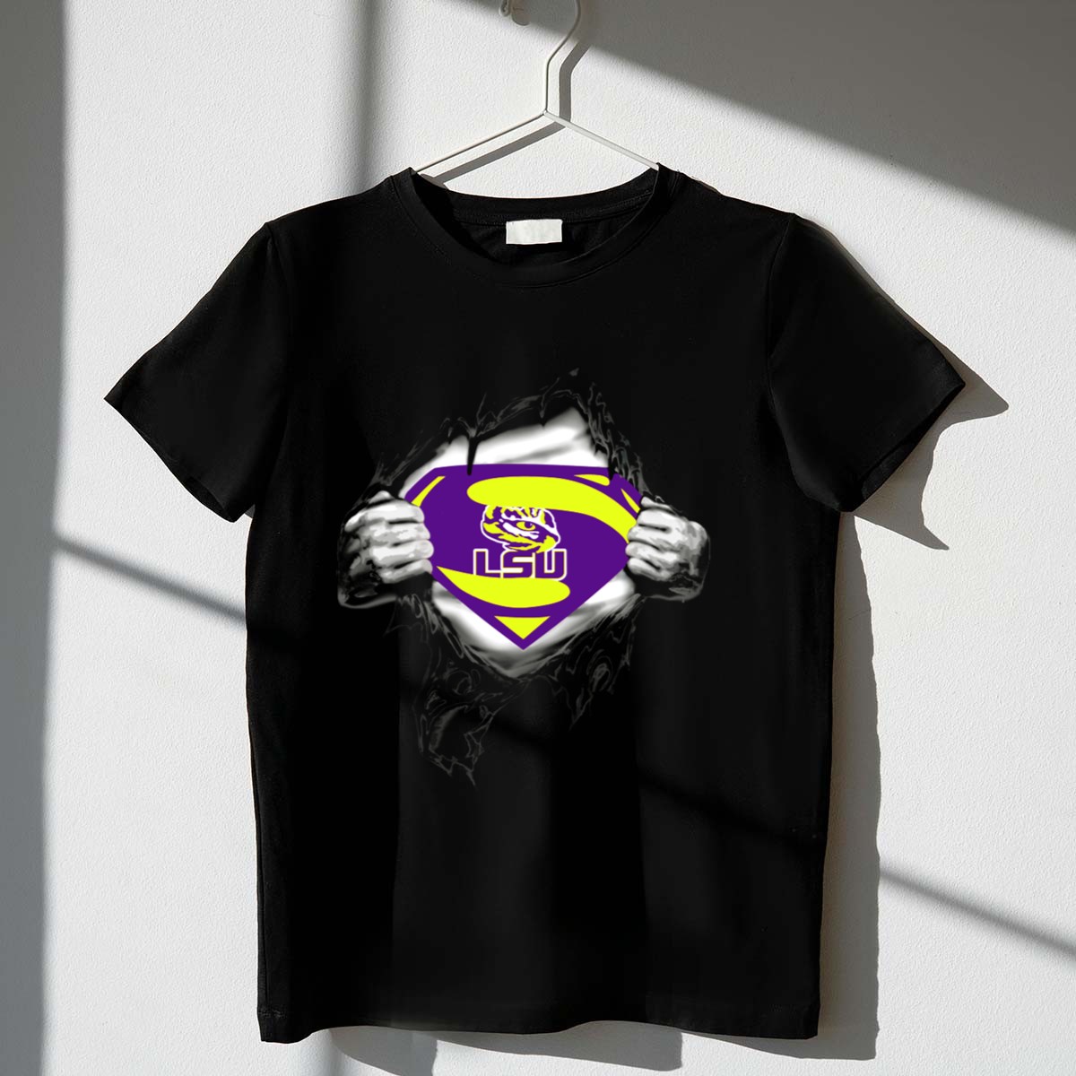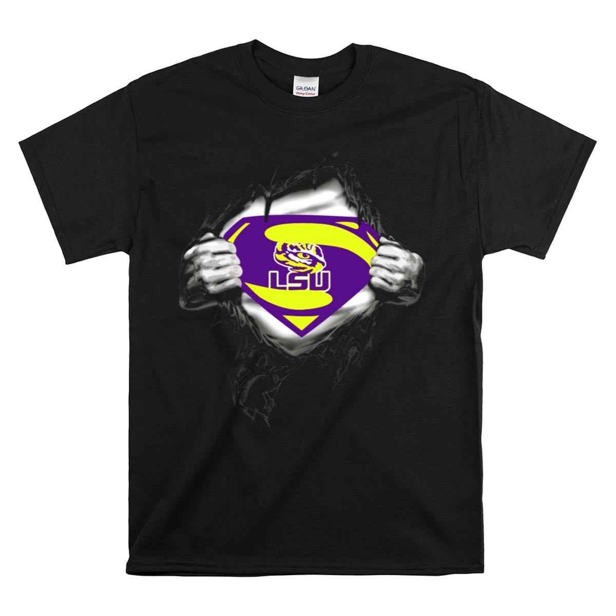 Show your team spirit in style with our LSU Tigers Superman Logo T-shirt! This fan-made design features an eye-catching graphic of the iconic Superman logo, complete with hands ripping through the fabric, making it a perfect choice for die-hard LSU fans. Ideal for casual outings, themed events, or daily wear, this shirt showcases your passion for the Tigers while ensuring comfort and durability. Proudly printed in the USA, it’s a must-have addition to any LSU supporter’s wardrobe.