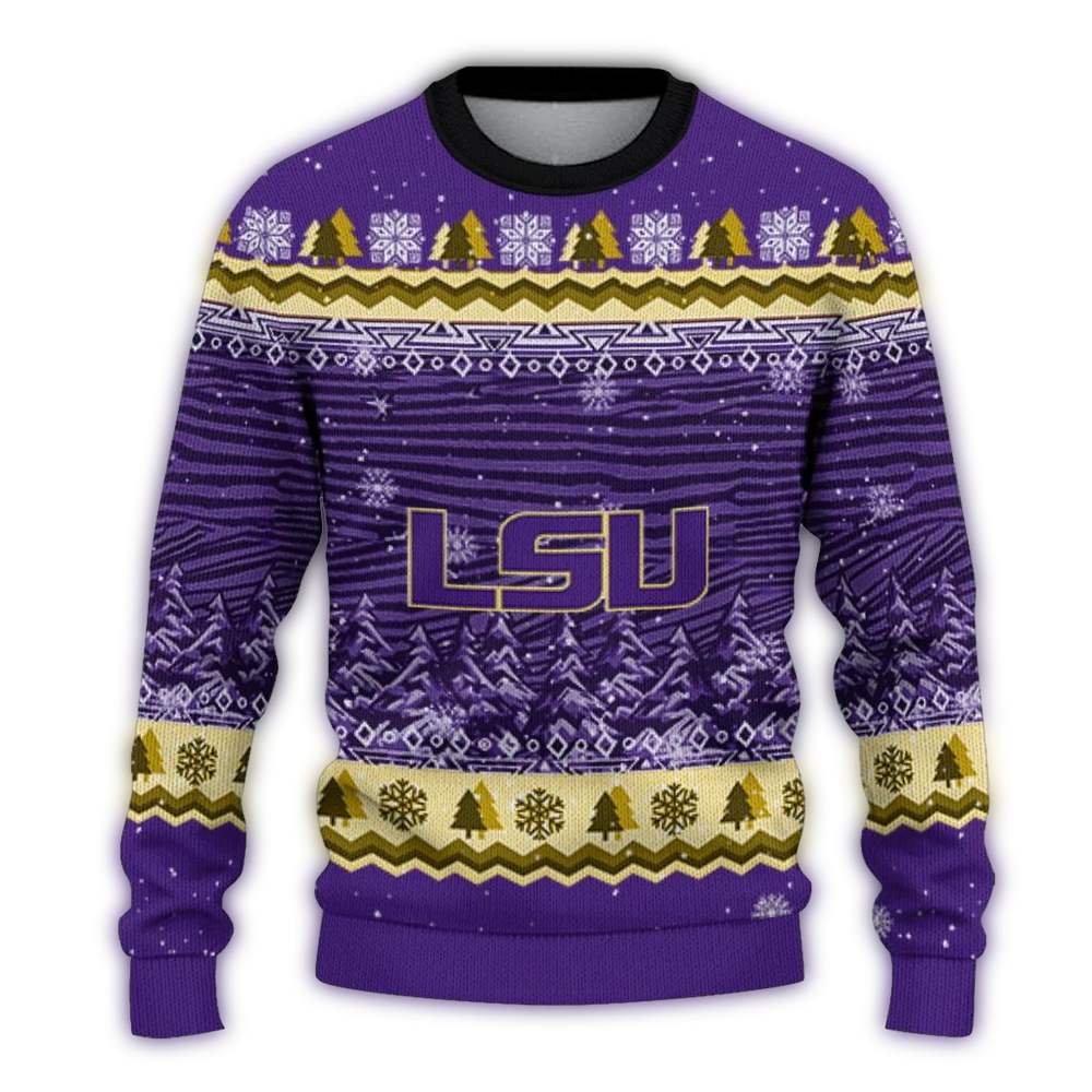 Get ready to show your team spirit in style with our LSU Tigers Tree Pattern Ugly Sweater! Perfect for die-hard fans, this sweater is your go-to for holiday parties, tailgating, or simply cozied up at home. With its festive design, it’s sure to bring smiles and laughter wherever you wear it!