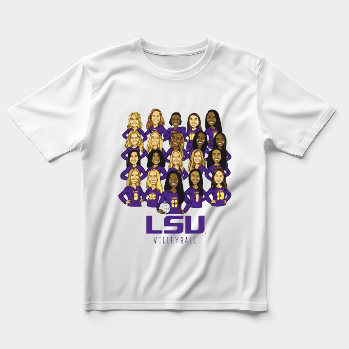 Show your support for the LSU Tigers Volleyball team with this fan-made graphic T-shirt, perfect for dedicated fans and new supporters alike. Whether you’re cheering from the stands, hitting a themed event, or enjoying a casual day out, this shirt is designed for every passionate fan. Made in the USA, it combines comfort with an eye-catching design that highlights your team spirit.