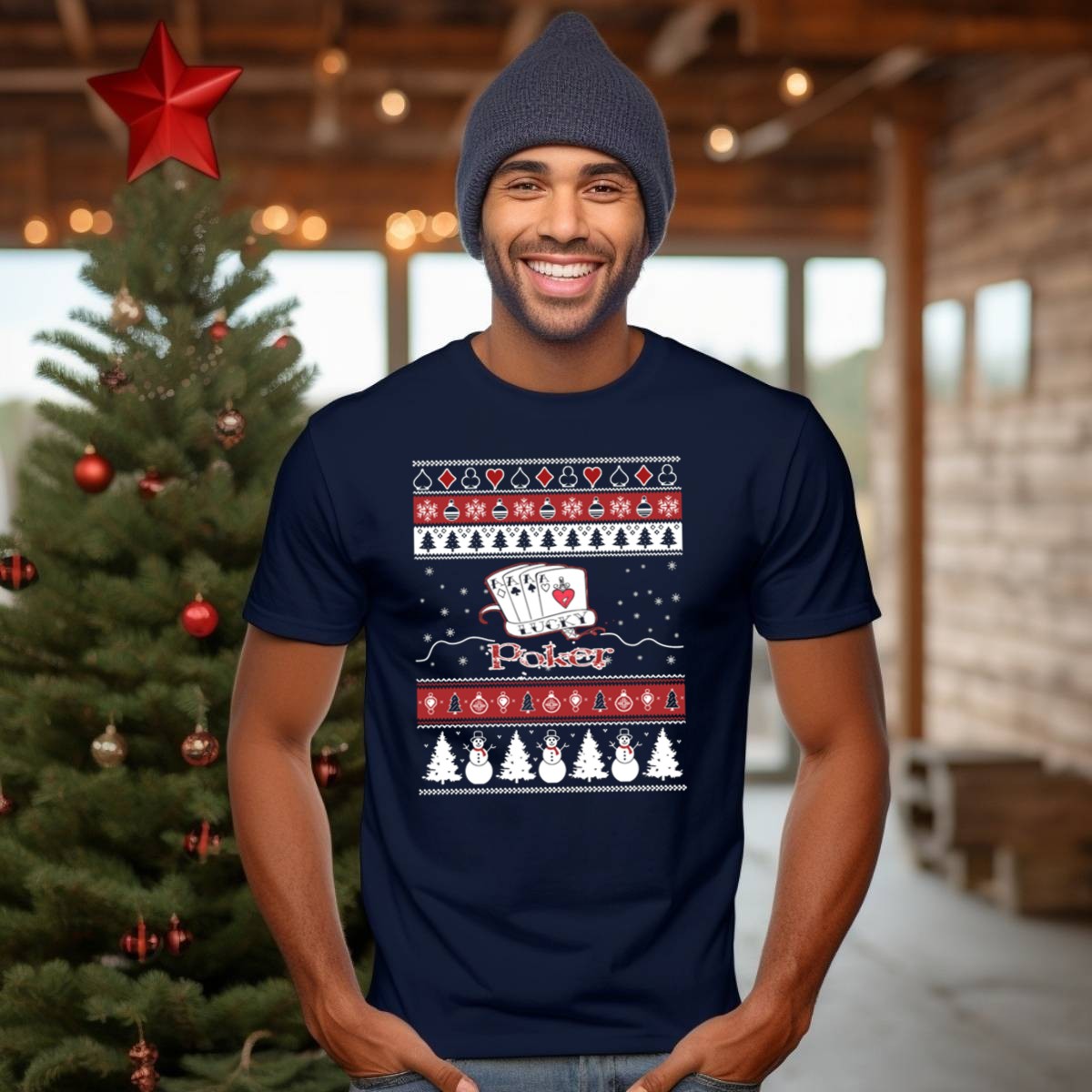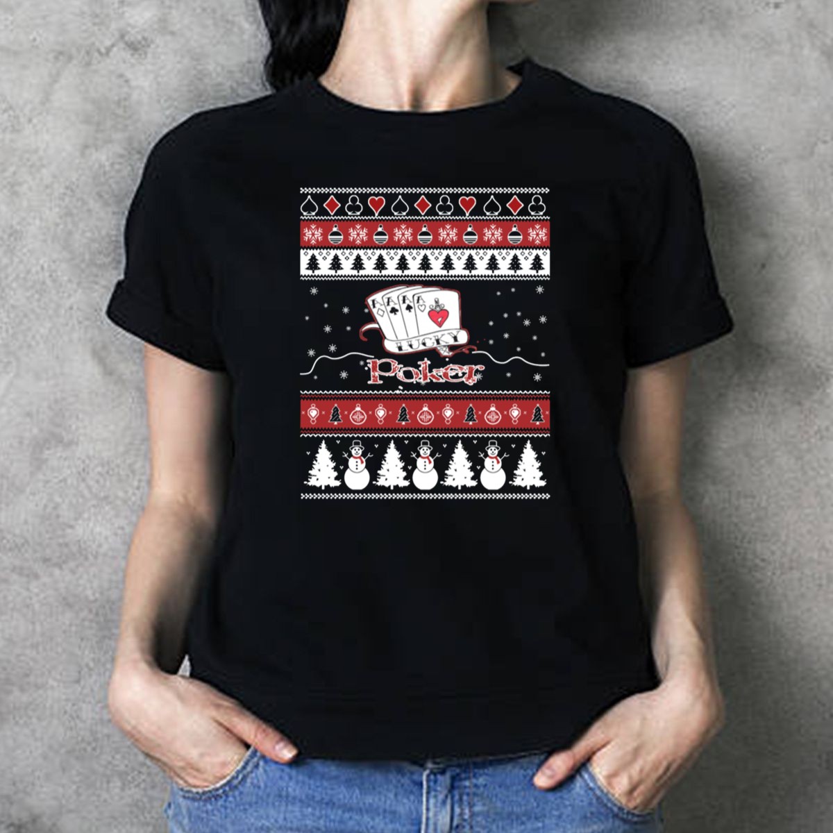 Get into the festive spirit with our Lucky Poker Christmas Card Lovers T-Shirt, perfect for those who love to combine their passion for poker with holiday cheer! This fan-made design features whimsical snowflakes, cheerful snowmen, and charming trees, making it an ideal choice for casual wear, themed events, or just spreading holiday joy. Crafted for comfort and style, this shirt is sure to become a beloved staple in your wardrobe.