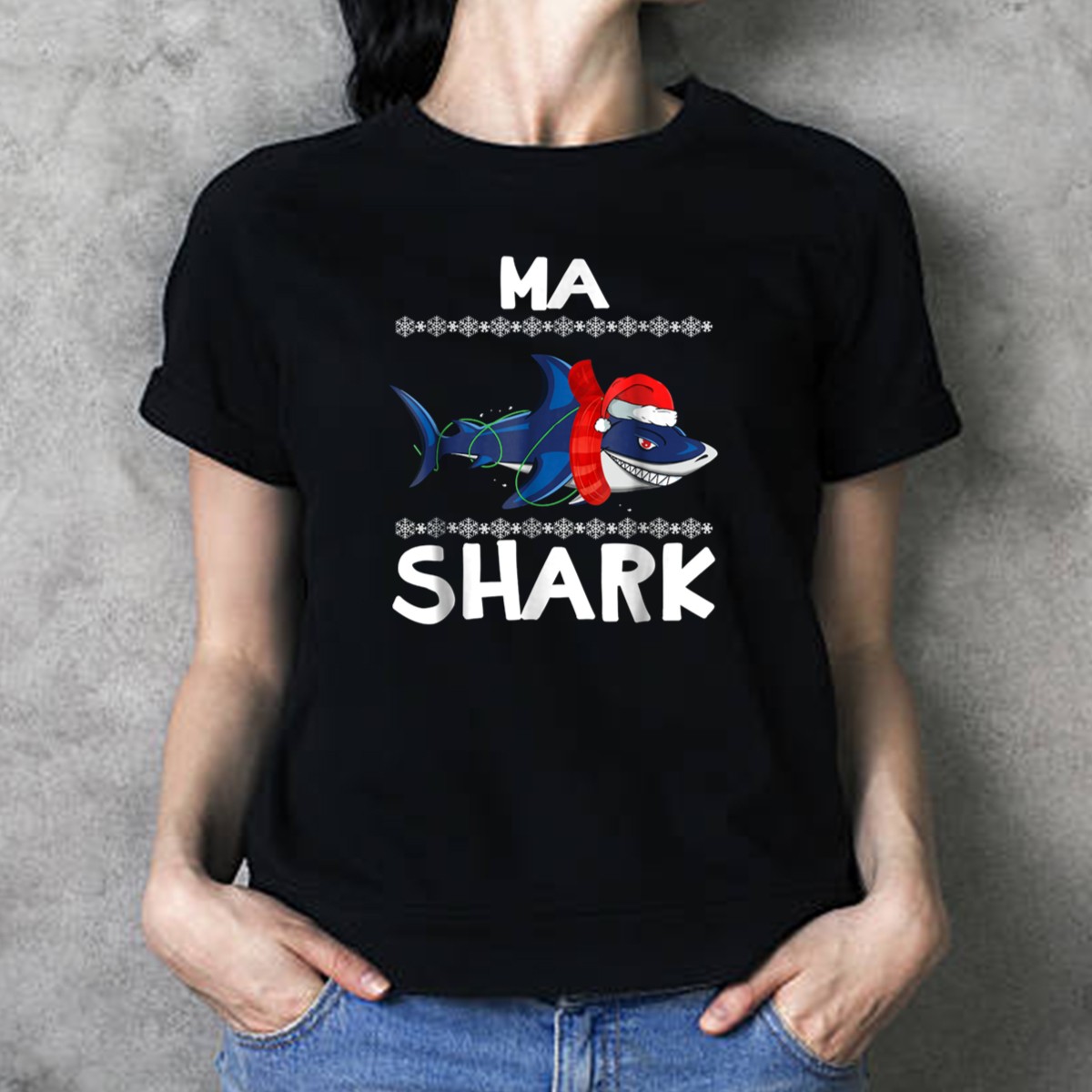 Ma Shark Ugly Christmas Snowflake Santa T-Shirt