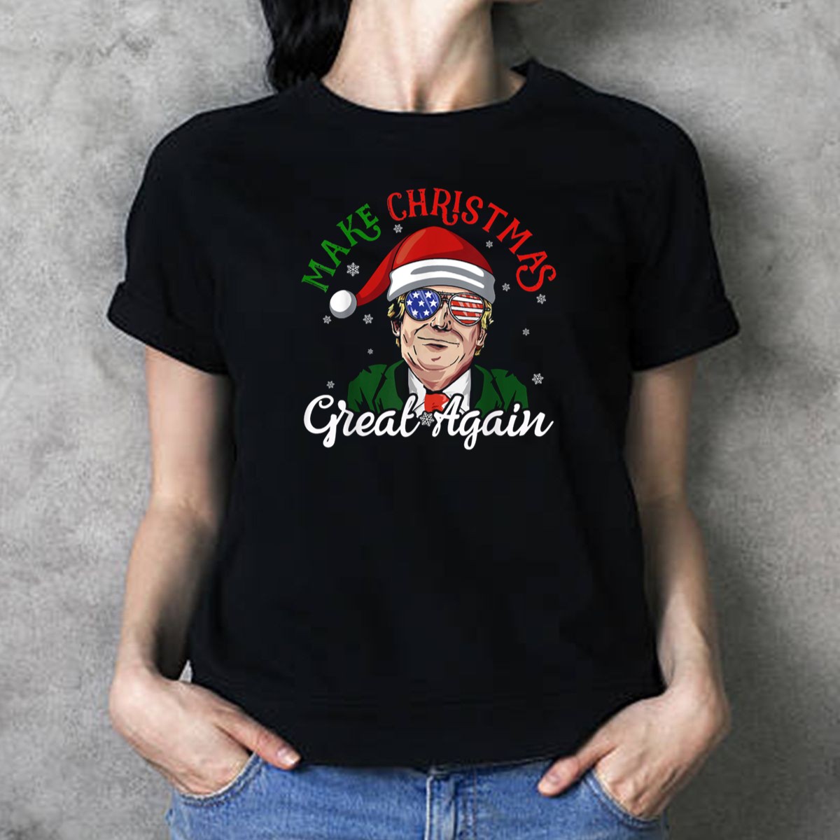 Get ready to spread holiday cheer with our “Make Christmas Great Again” President Trump Santa Holiday T-Shirt! This fun and festive tee is perfect for anyone who wants to add a touch of humor to their Christmas celebrations. Whether you’re attending a casual family gathering or a themed event, this shirt is designed to bring smiles and laughter. Made with fan-made designs printed right here in the USA, it’s a unique way to showcase your holiday spirit!