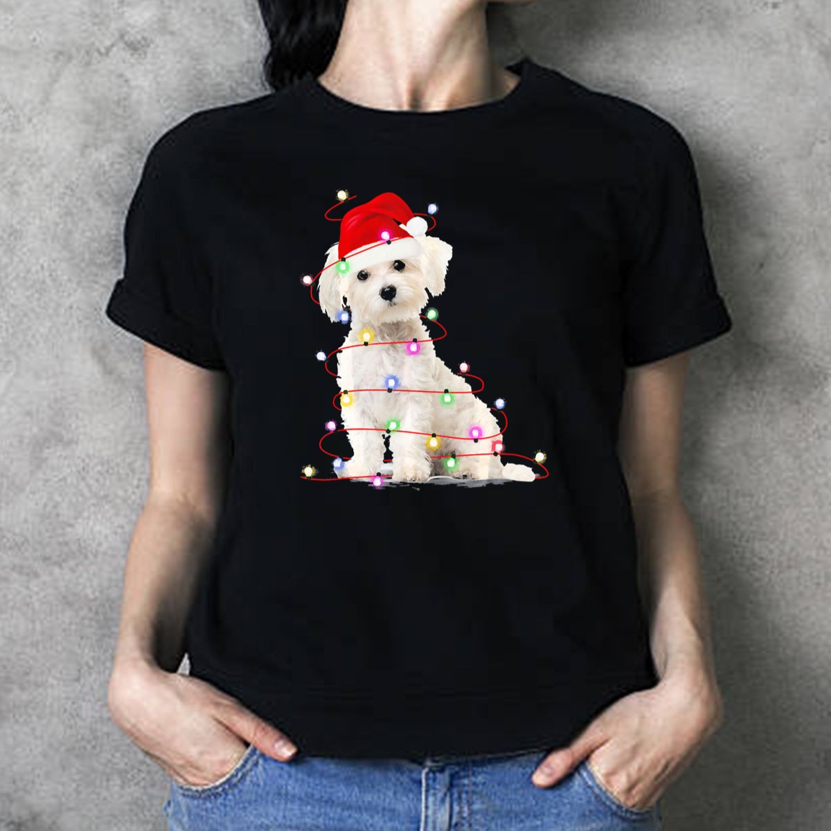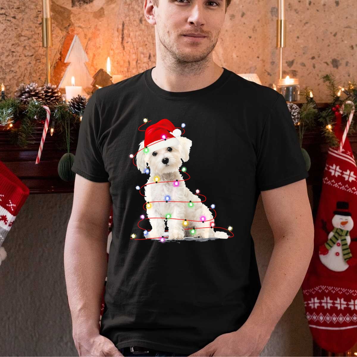 Celebrate the holiday season in style with our Maltese Christmas Santa Hat Wrapped In Festive Lights T-Shirt! Perfect for dog lovers and festive enthusiasts alike, this fun and playful design brings a touch of joy to your casual wear. Ideal for themed events, holiday gatherings, or simply lounging around, this shirt combines comfort and cheer, making it a must-have addition to your wardrobe.