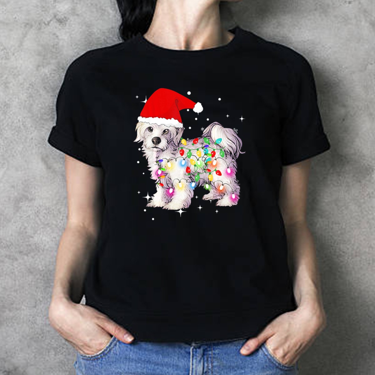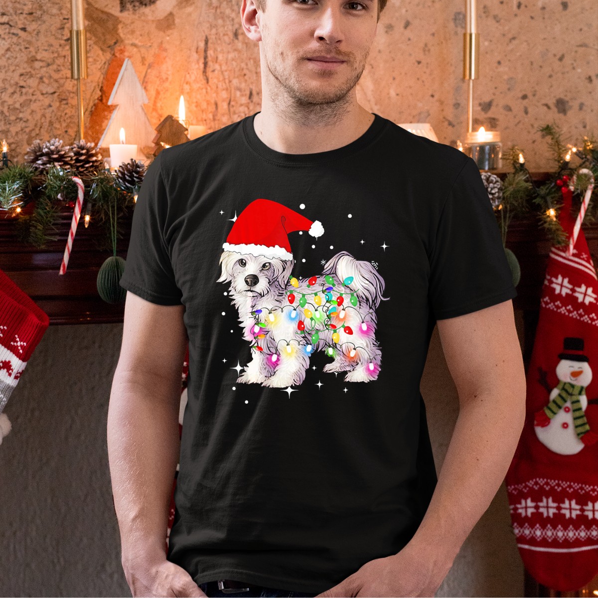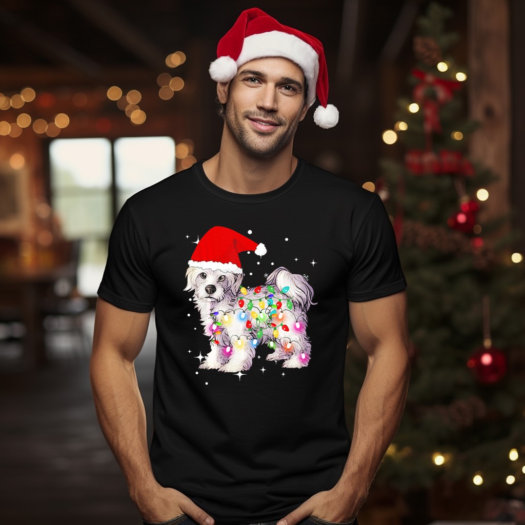 Celebrate the festive season with our adorable Maltese Dog with Santa Hat Wrapped in Colorful Christmas Lights T-Shirt! Perfect for dog lovers and holiday enthusiasts alike, this charming tee combines playful design with comfort, making it an ideal choice for casual wear, themed events, or simply spreading holiday cheer. With its unique fan-made graphic printed in the USA, this shirt is sure to be a conversation starter at any holiday gathering.