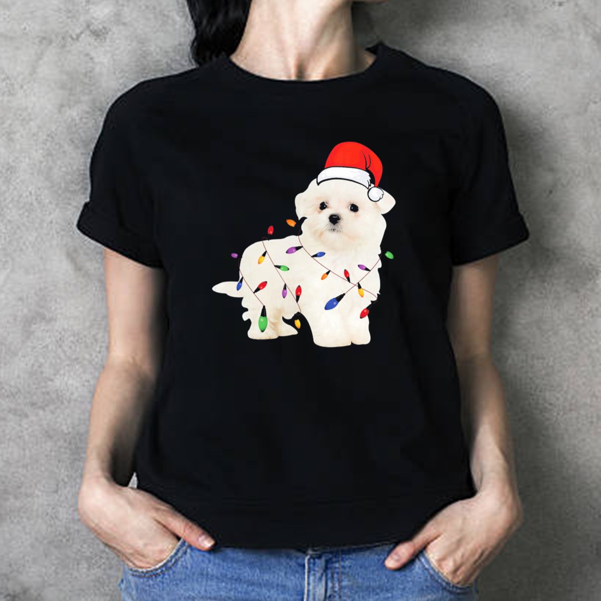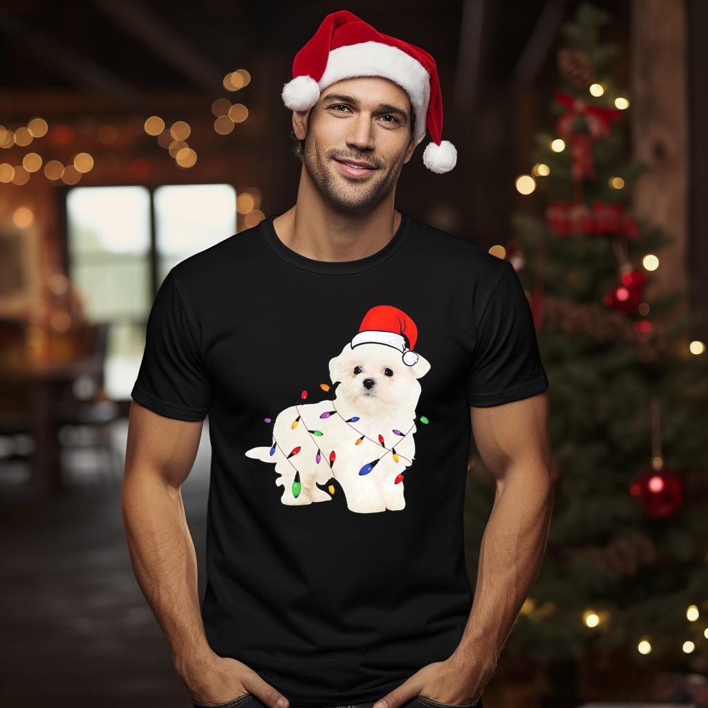 Celebrate the festive season with our adorable Maltese Puppy Wearing Santa Hat Wrapped In Colorful Christmas Lights T-Shirt! Perfect for dog lovers and holiday enthusiasts alike, this fan-made design captures the joy and warmth of Christmas, making it an ideal choice for casual wear, themed events, or simply spreading holiday cheer during daily outings. Printed right here in the USA, this shirt combines comfort and style with a delightful twist that showcases your love for your furry friends.