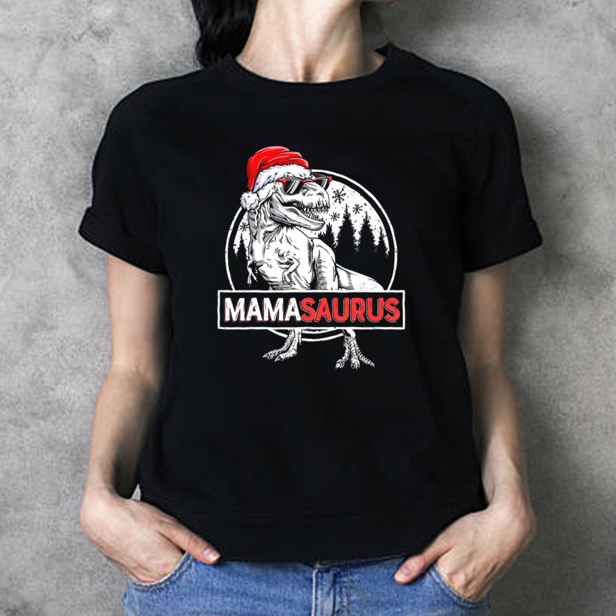 Embrace the holiday spirit with our Mamasaurus Dinosaur Christmas Santa Hat Sunglasses T-Shirt! Perfect for dino-loving moms, this playful tee is ideal for casual wear, themed events, or simply spreading festive cheer during the holiday season. Featuring an eye-catching fan-made design printed right here in the USA, this shirt combines comfort and style, making it a unique addition to any festive wardrobe.