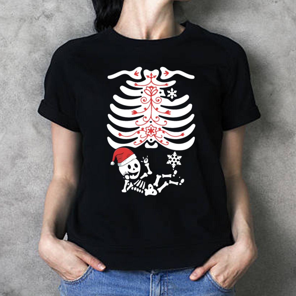 Celebrate the festive season in style with our Maternity Christmas Skeleton Xray Pregnant Santa Hat Snowflake T-Shirt! Perfect for expectant mothers who want to showcase their holiday spirit with a fun twist, this unique shirt combines a playful skeleton design with a Santa hat and snowflakes, making it an ideal choice for casual gatherings, themed events, or simply daily wear during the holidays. Crafted with comfort in mind, this shirt is not only stylish but also made from high-quality materials to ensure you feel great all season long.