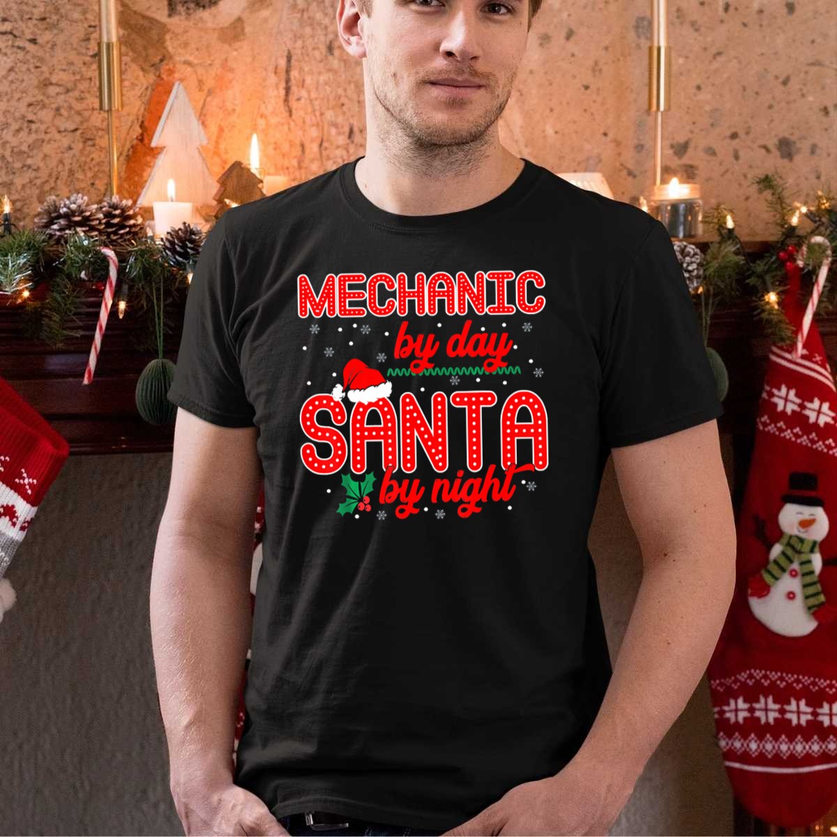 Mechanic By Day Santa By Night Christmas Themed Santa Hat Holly Snowflakes T Shirt
