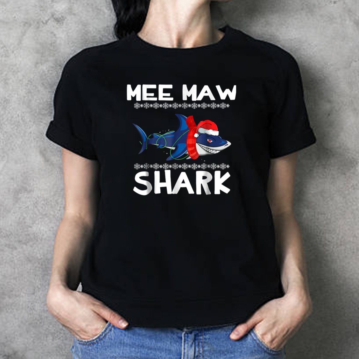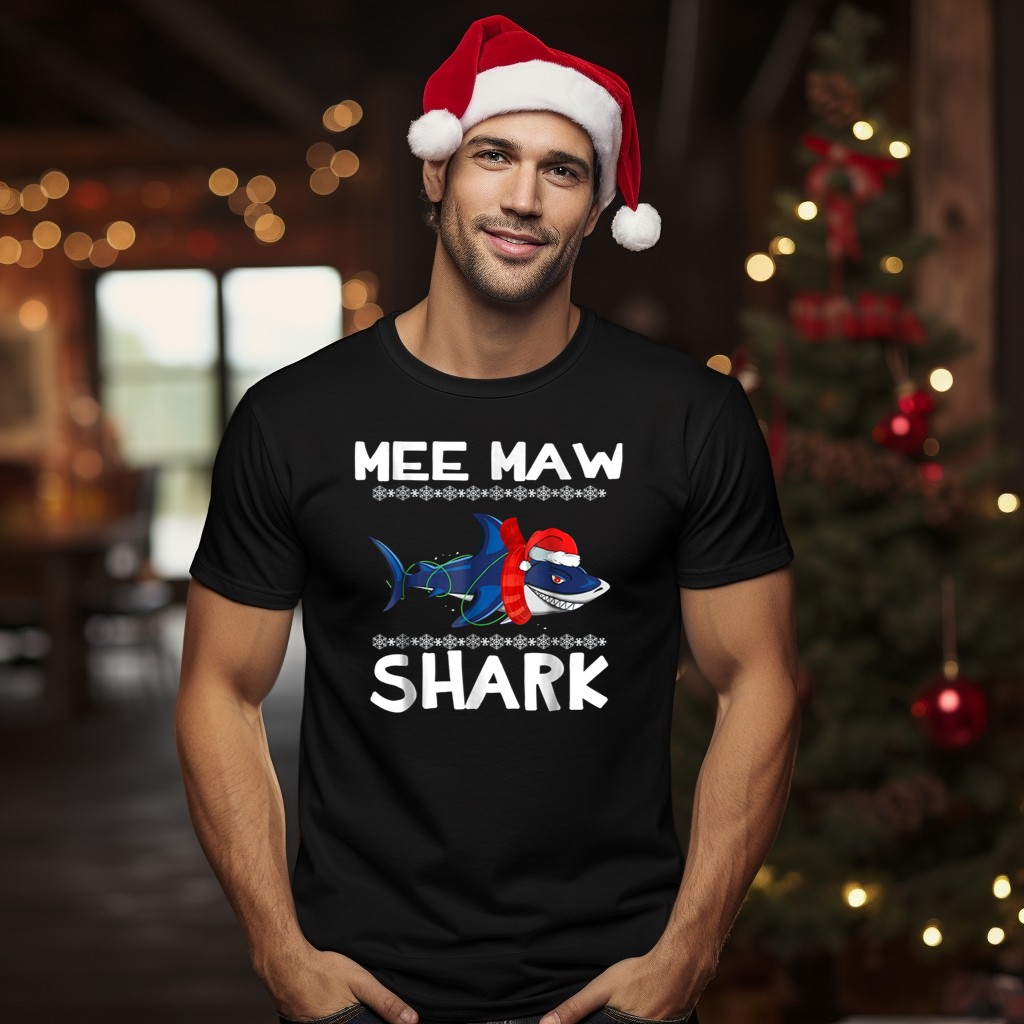 Be the first to review “Mee Maw Shark Ugly Christmas Family Santa Hat Lights Snowflakes T-Shirt”