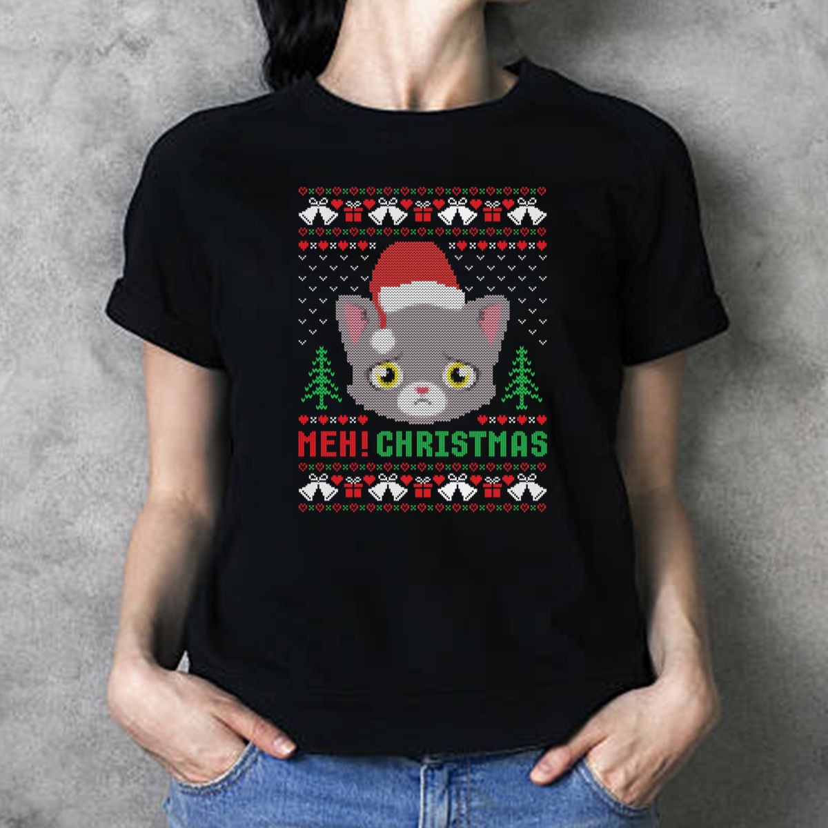 Celebrate the holiday season with a touch of humor in our Meh Christmas Cat Ugly Sweater Design T-Shirt! Perfect for cat lovers and those who appreciate a good laugh, this shirt is ideal for casual outings, themed events, or simply spreading festive cheer in your daily wear. The unique fan-made design features a playful cat donning a Santa hat, making it a standout piece that embodies the fun of the holidays while ensuring comfort and style.