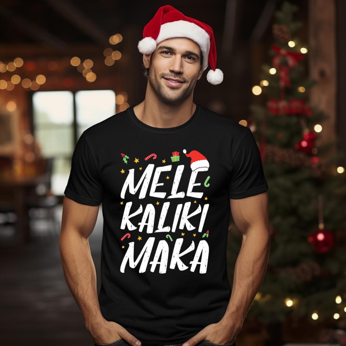 Celebrate the spirit of the holidays with our Mele Kalikimaka Christmas T-Shirt, featuring a festive design complete with Santa hats, candy canes, and holly. Perfect for anyone looking to spread cheer at casual gatherings, themed events, or just during your everyday holiday celebrations, this shirt adds a touch of Hawaiian flair to your seasonal wardrobe. Made for comfort and style, it’s a unique fan-made piece printed right here in the USA.
