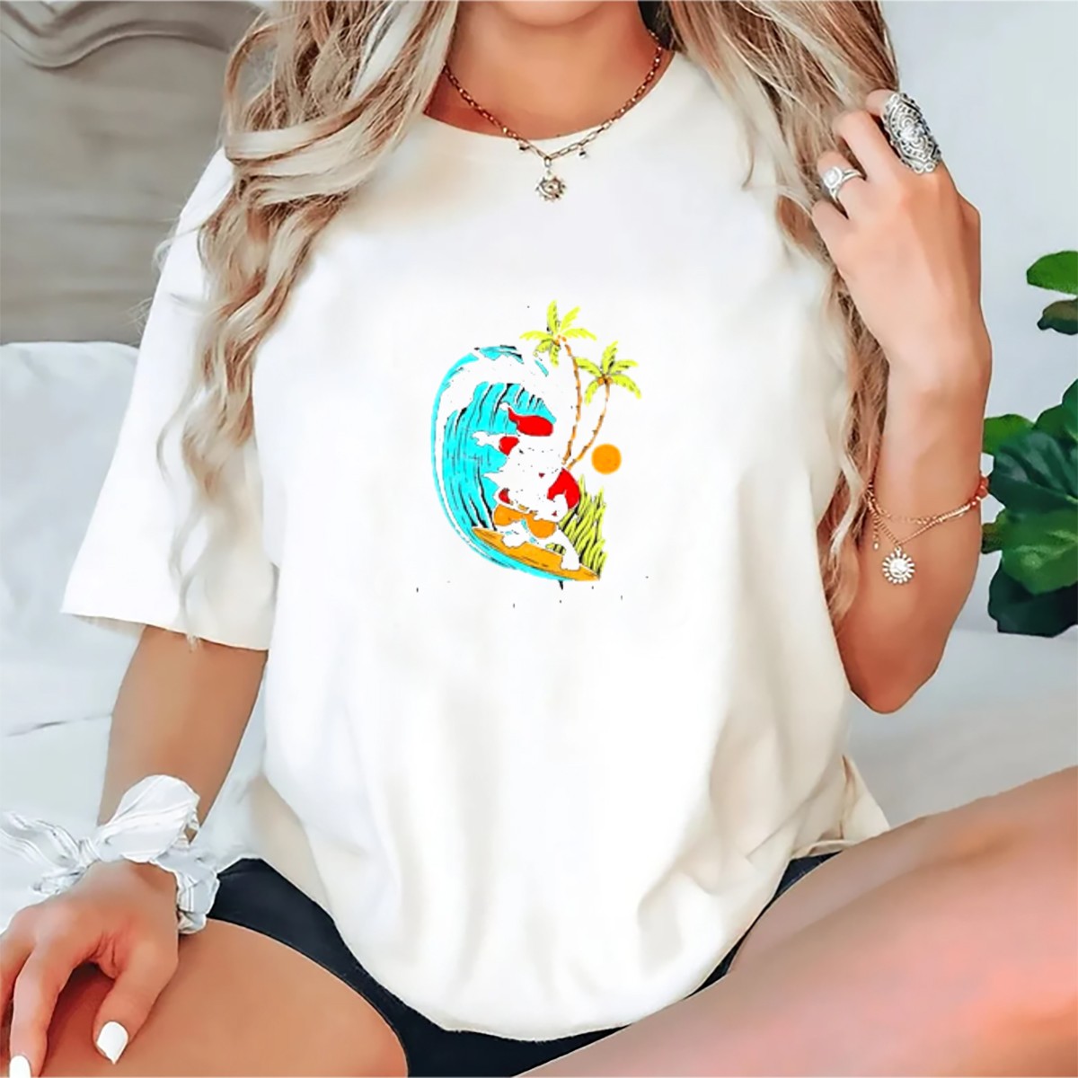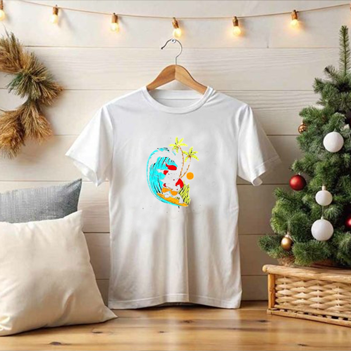 Celebrate the spirit of Aloha this holiday season with our Mele Kalikimaka Hawaii Christmas Surfing Santa T-Shirt! Perfect for anyone who loves the festive vibe of Christmas in paradise, this shirt is ideal for casual outings, themed events, or just spreading cheer on daily adventures. Featuring a unique design that captures the essence of Hawaiian culture and holiday fun, this T-shirt is printed in the USA, making it a one-of-a-kind addition to your wardrobe.