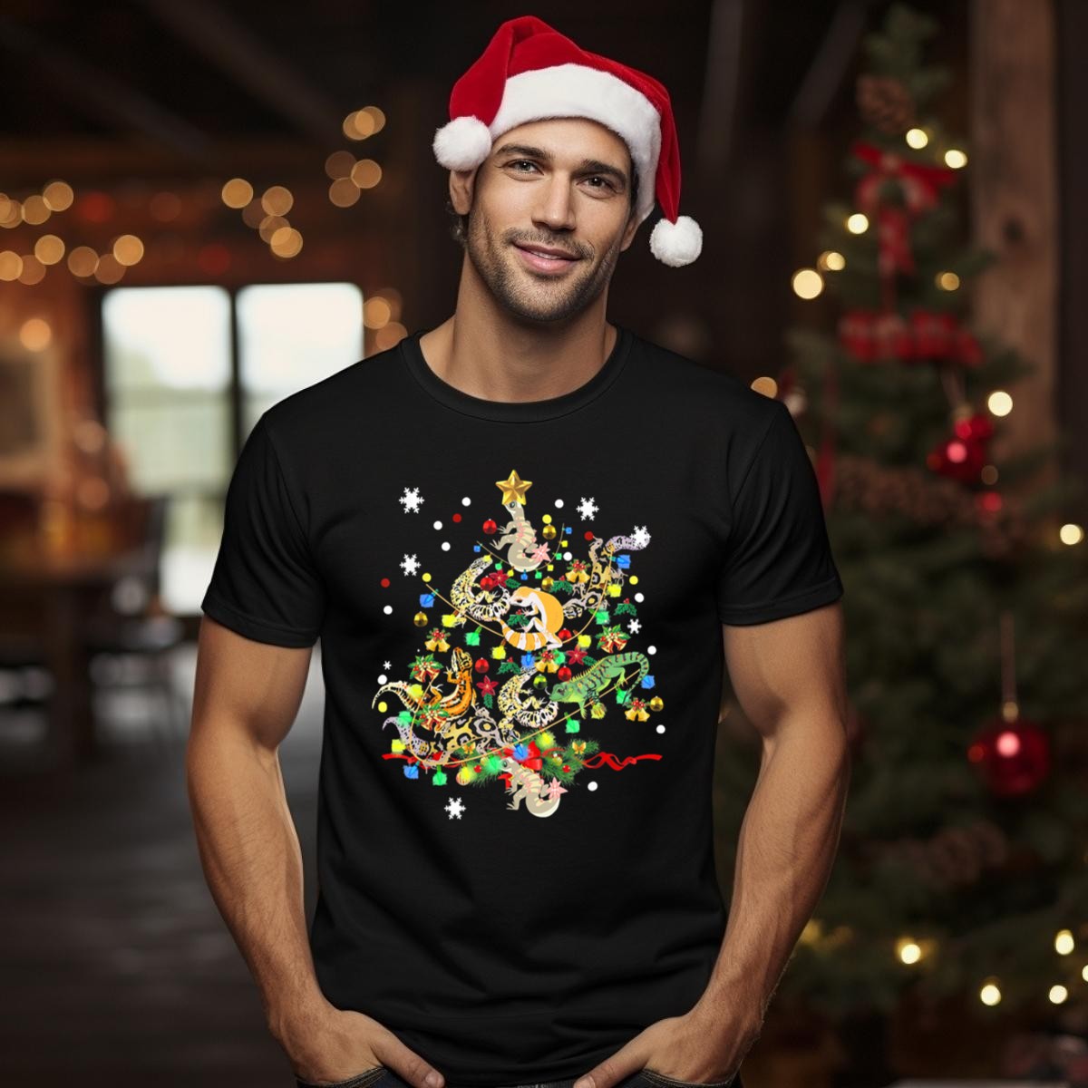 Be the first to review “Mens Funny Leopard Gecko Christmas Tree Decor Holiday Snowflakes Stars T-Shirt”