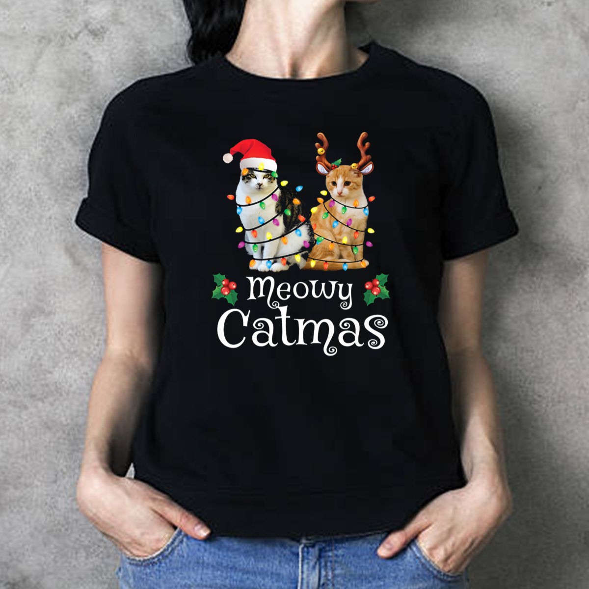 Celebrate the festive season with our Meowy Catmas Christmas Lights Kitten T-Shirt, perfect for cat lovers and holiday enthusiasts alike! This adorable tee features a playful design that captures the spirit of Christmas with a cute kitten surrounded by twinkling lights. Whether you’re attending a themed event, gathering with friends, or simply enjoying a cozy day at home, this shirt will bring a smile to your face and warmth to your heart. Made for comfort and style, it’s a must-have addition to your holiday wardrobe!
