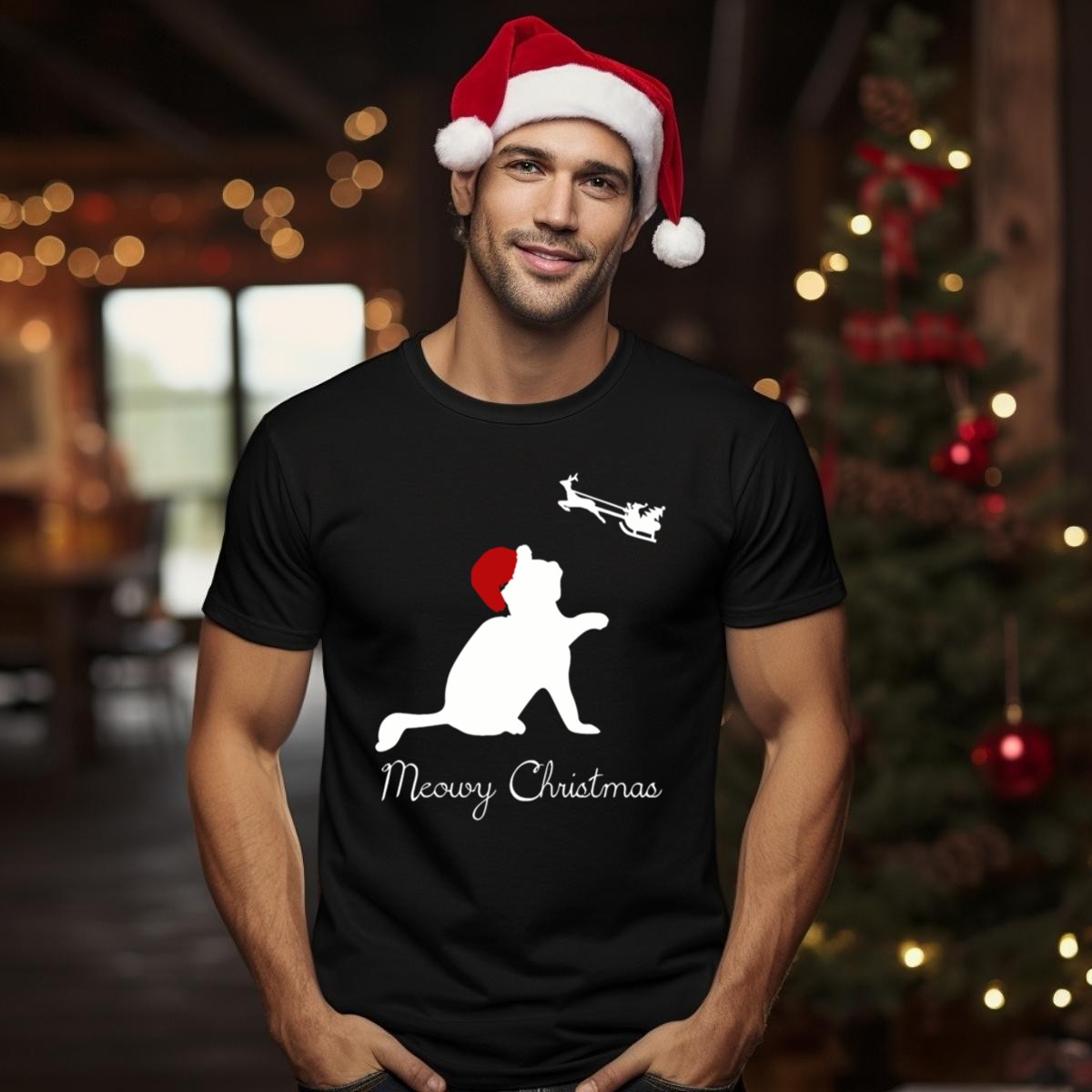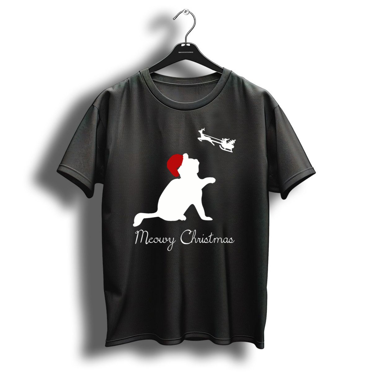 Celebrate the festive season with our Meowy Christmas Cat Santa Hat and Sleigh T-Shirt! Perfect for cat lovers and holiday enthusiasts alike, this playful design adds a touch of whimsy to your casual wear. Whether you’re attending a themed event, gathering with friends, or simply enjoying daily wear during the holidays, this shirt is a must-have to showcase your love for felines and festive cheer. Made with care in the USA, this fan-made design is sure to turn heads and spread joy wherever you go!