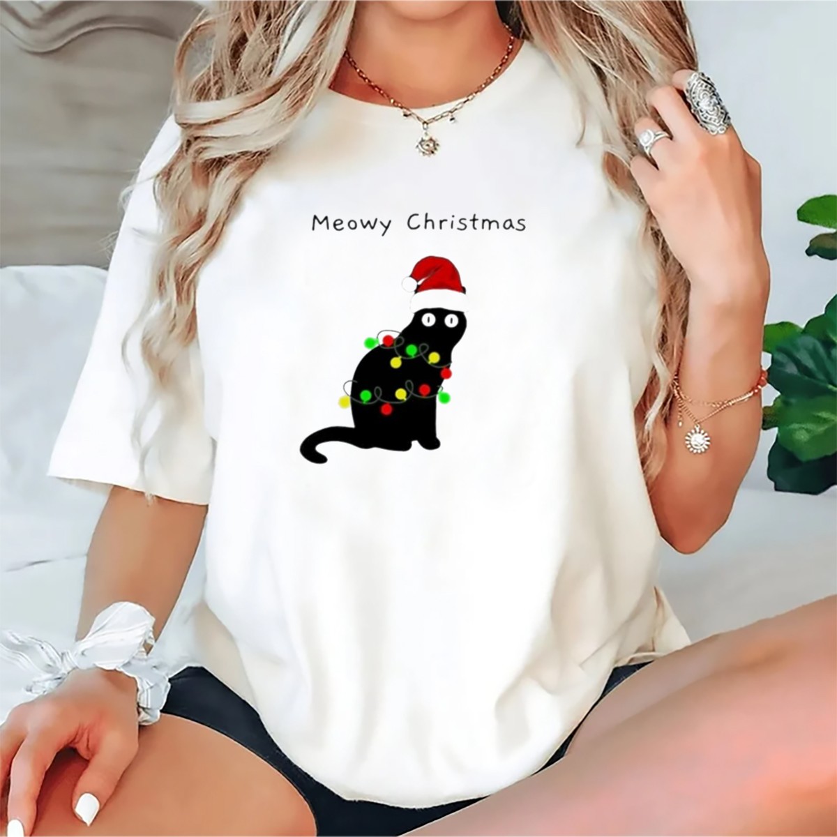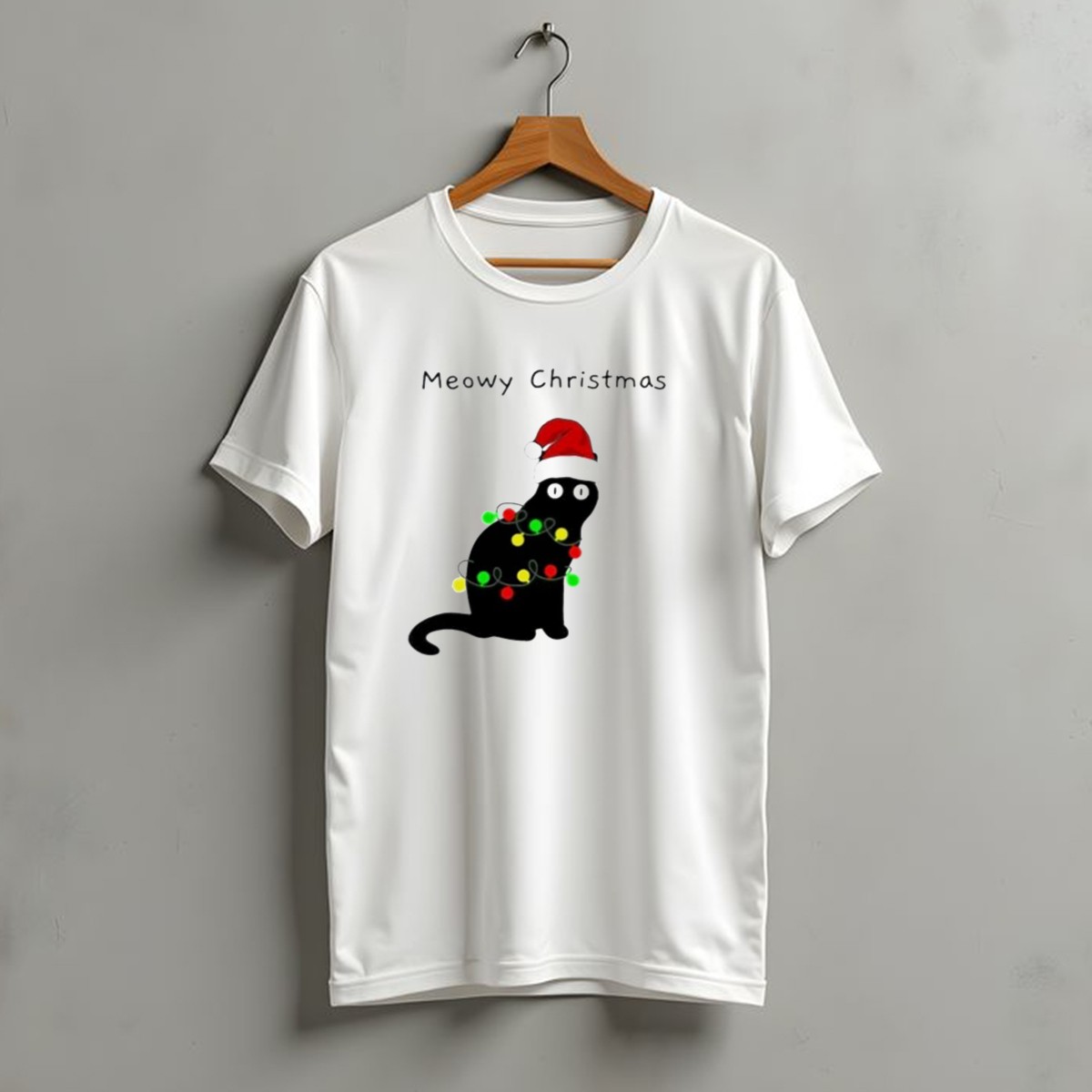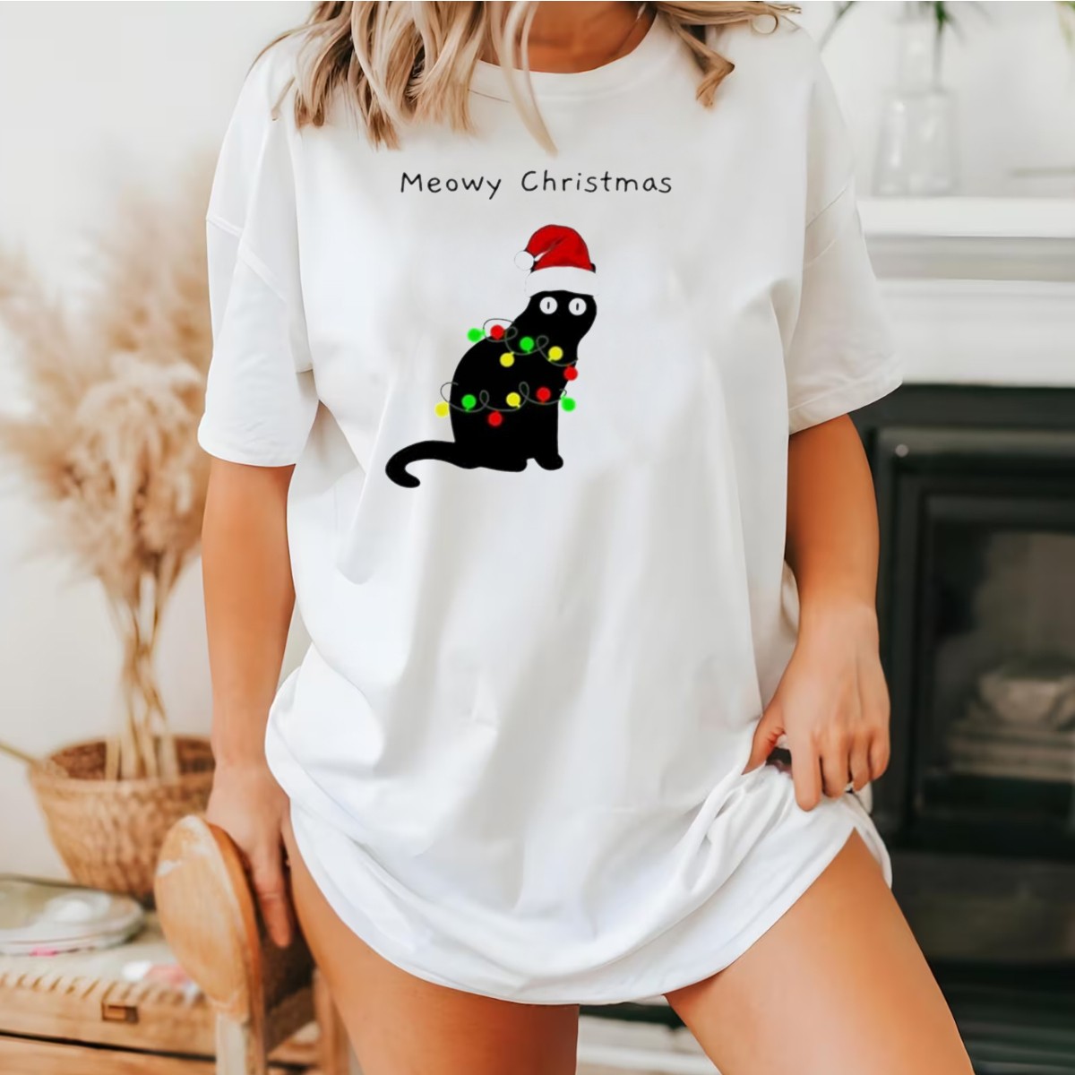 Celebrate the holidays with a touch of whimsy in our Meowy Christmas Santa Cat T-Shirt! Perfect for cat lovers and festive spirits alike, this fan-made design features an adorable feline dressed as Santa, surrounded by twinkling lights. Ideal for casual wear, themed events, or simply spreading cheer during the festive season, this T-shirt is sure to be a conversation starter wherever you go. Made with high-quality materials and printed in the USA, it’s a unique addition to your holiday wardrobe.