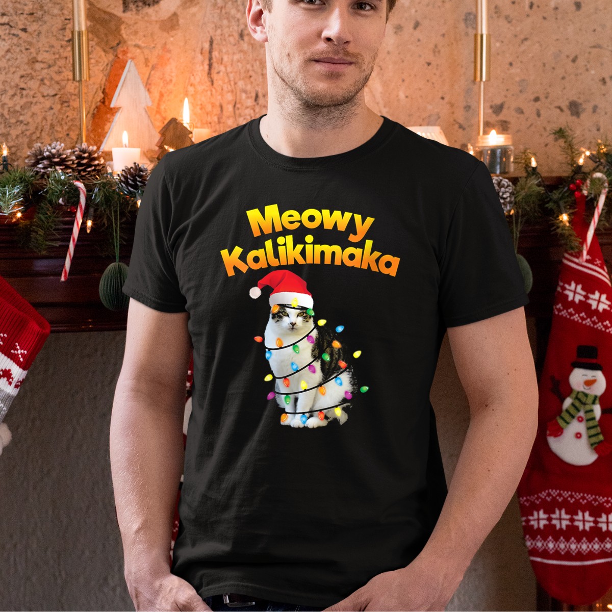 Celebrate the festive season with our Meowy Kalikimaka Cat Wrapped In Christmas Lights T-Shirt! Perfect for cat lovers and holiday enthusiasts alike, this fun and whimsical design showcases a charming feline bundled in twinkling lights and donning a Santa hat. Whether you’re attending a holiday party, lounging at home, or spreading cheer during themed events, this shirt is a delightful way to share your love for cats and the spirit of Christmas. Made in the USA, it’s not just a shirt; it’s a festive statement!