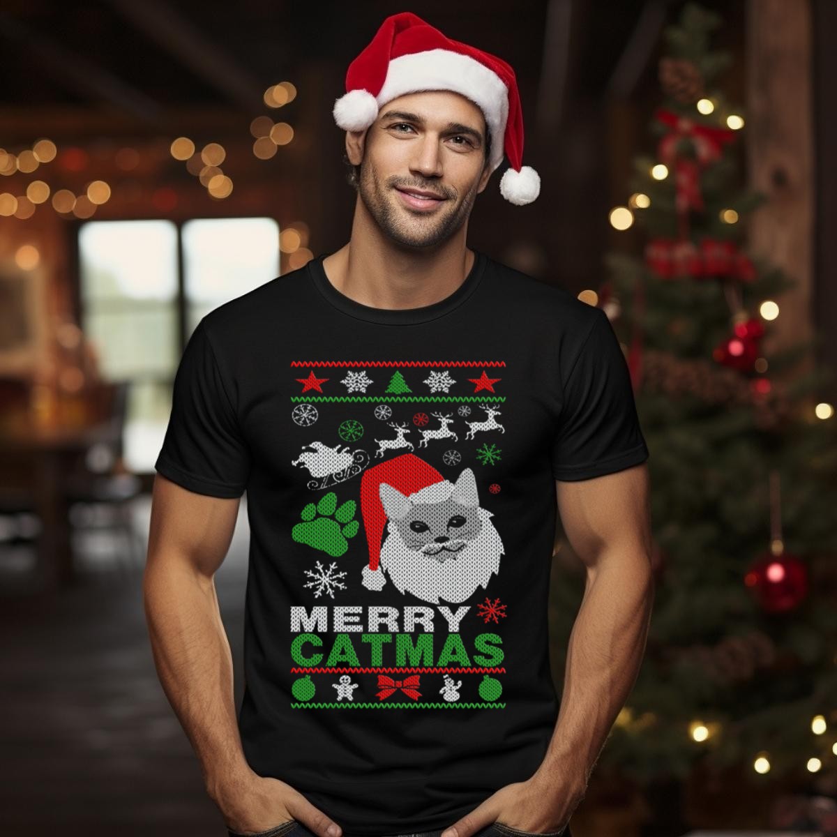 Get into the festive spirit with our Merry Catmas Ugly Christmas T-Shirt! Featuring an adorable Santa Cat surrounded by playful reindeer and paw prints, this shirt is perfect for cat lovers and anyone who enjoys a bit of holiday cheer. Ideal for casual outings, themed events, or simply lounging around during the holiday season, this fan-made design is printed in the USA, ensuring a unique touch to your wardrobe. Embrace the joy of Christmas with this fun and cozy shirt that brings a smile to everyone!