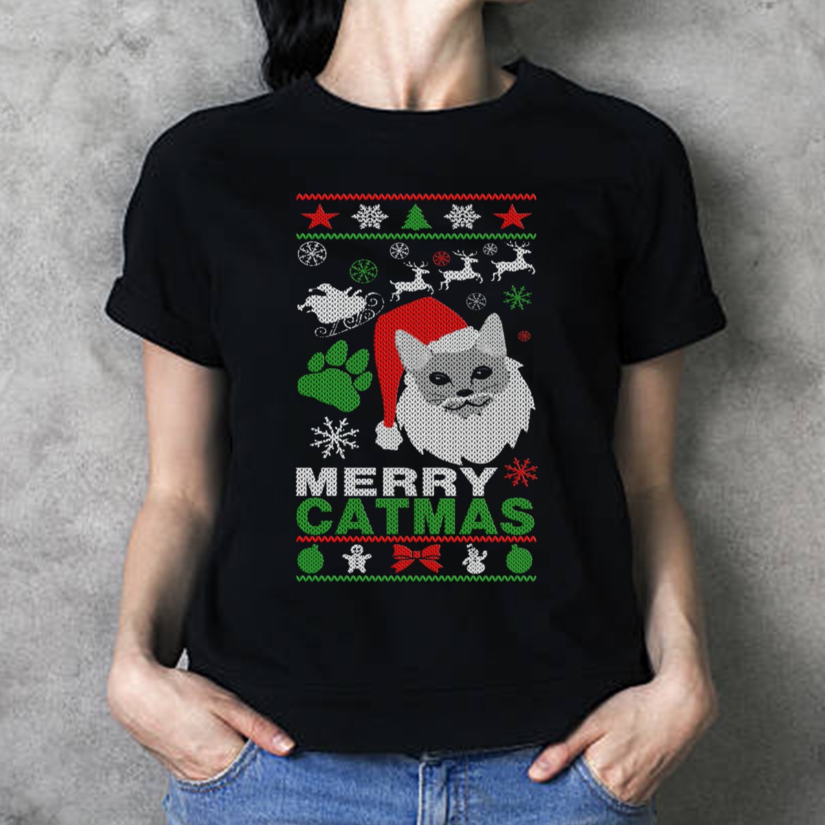 Get into the festive spirit with our Merry Catmas Ugly Christmas Sweater Santa Cat T-Shirt! This playful design featuring a jolly Santa cat surrounded by adorable reindeer and paw prints is perfect for cat lovers and holiday enthusiasts alike. Whether you’re attending a themed event, celebrating with friends, or just enjoying a cozy day at home, this shirt brings a fun twist to your casual wear. Made with high-quality materials and printed in the USA, it’s not just a shirt; it’s a celebration of your love for cats and the holiday season!