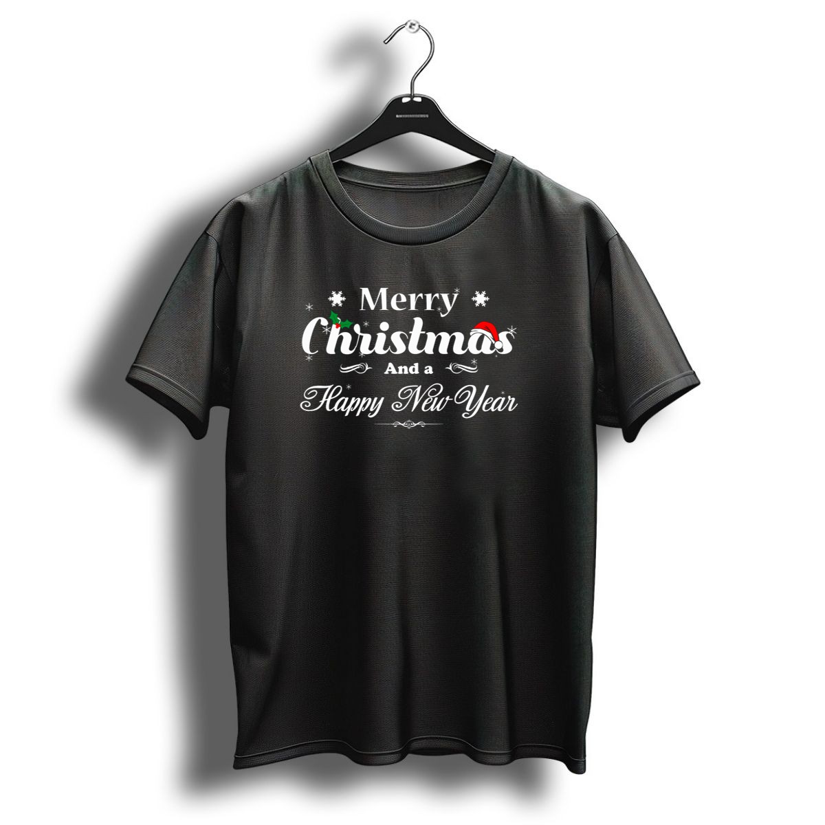Celebrate the festive season in style with our Merry Christmas And A Happy New Year Snowflakes Holly Santa Hat T-Shirt. Perfect for holiday gatherings, themed events, or simply spreading cheer during your daily outings, this fan-made design captures the joy of the season. Made with care and printed in the USA, this shirt is a delightful way to showcase your holiday spirit and share warm wishes with everyone around you.