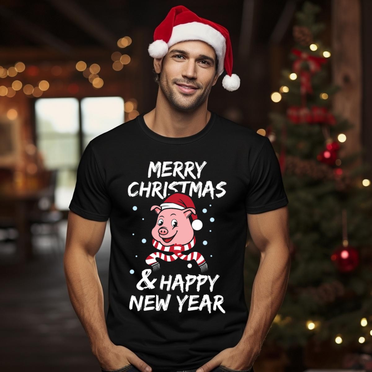 Celebrate the festive season in style with our Merry Christmas And Happy New Year Pig In Santa Hat And Scarf T-Shirt! Perfect for animal lovers and holiday enthusiasts alike, this charming design adds a playful touch to your casual wear. Ideal for themed events, family gatherings, or simply spreading cheer during your daily activities, this shirt is sure to bring smiles wherever you go. Made with love in the USA, it’s a delightful addition to your holiday wardrobe.