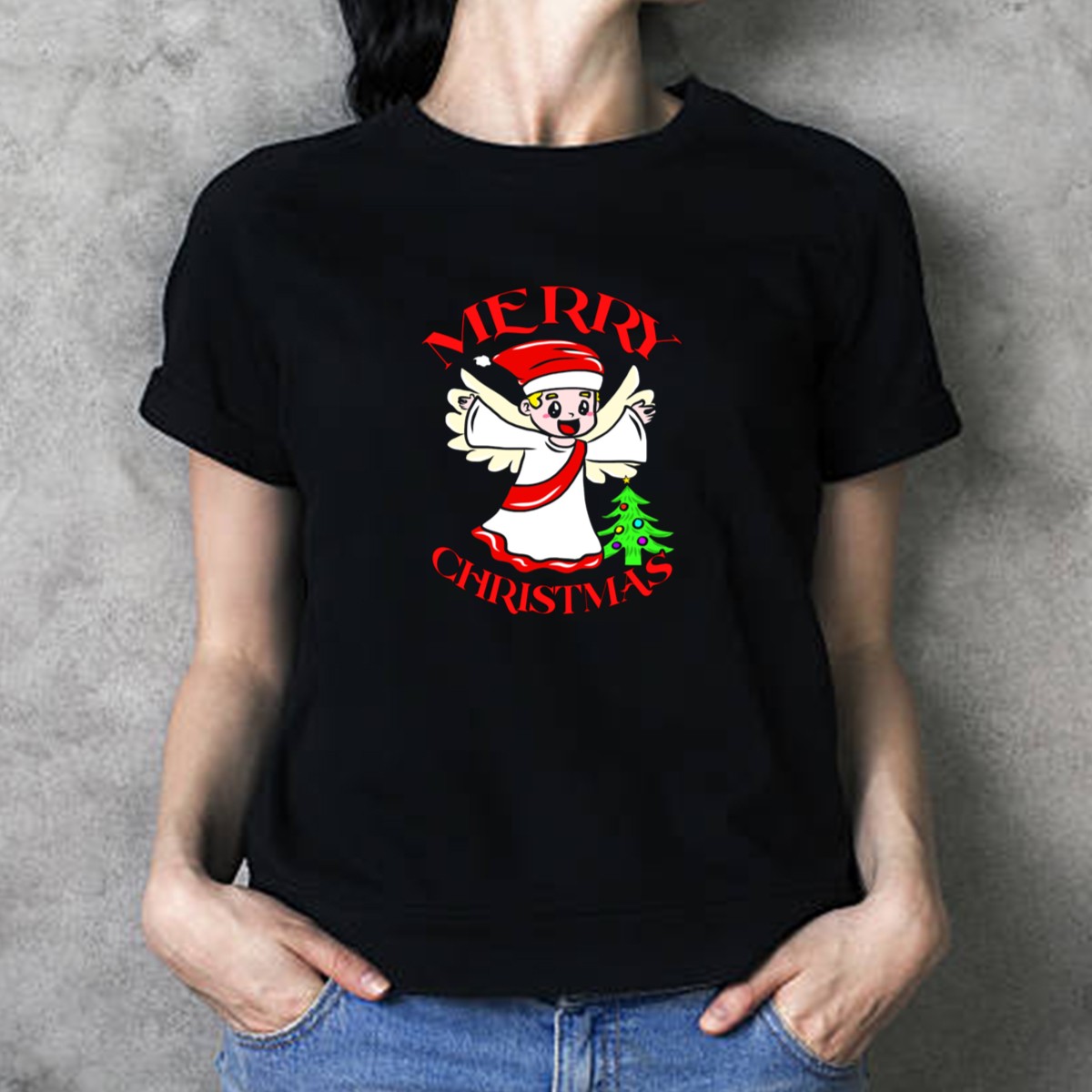 Be the first to review “Merry Christmas Angel With Santa Hat And Christmas Tree T-Shirt”