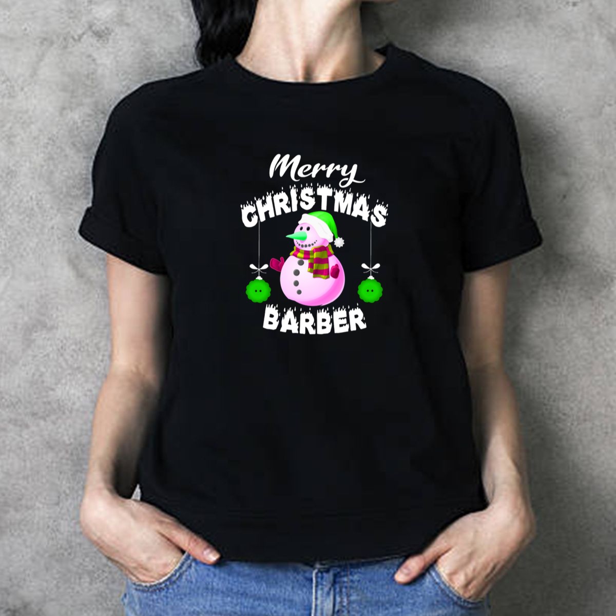 Be the first to review “Merry Christmas Barber Snowman With Green Ornaments And Scarf T Shirt 1”