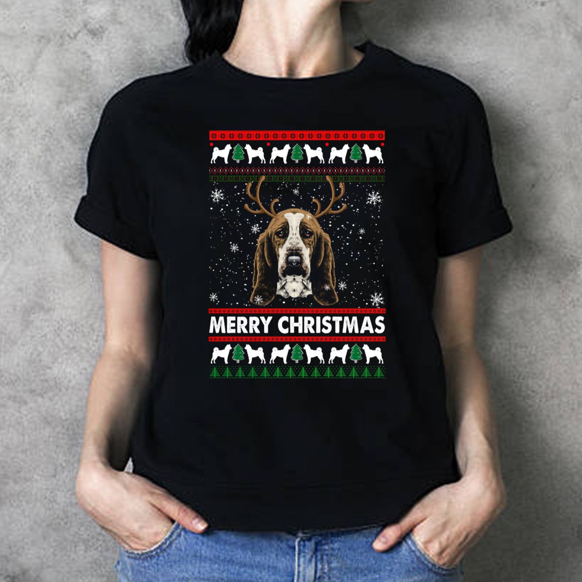 Celebrate the holiday season in style with our Merry Christmas Basset Hound Reindeer Antlers Snowflakes T-Shirt! Perfect for dog lovers and festive enthusiasts alike, this fun and playful design adds a touch of whimsy to your casual wear. Whether you’re attending a holiday party, enjoying a themed event, or simply spreading cheer during your daily activities, this shirt is a must-have for all-season comfort and joy. Made right here in the USA, it’s not just a shirt; it’s a celebration of your love for Basset Hounds and the holiday spirit!