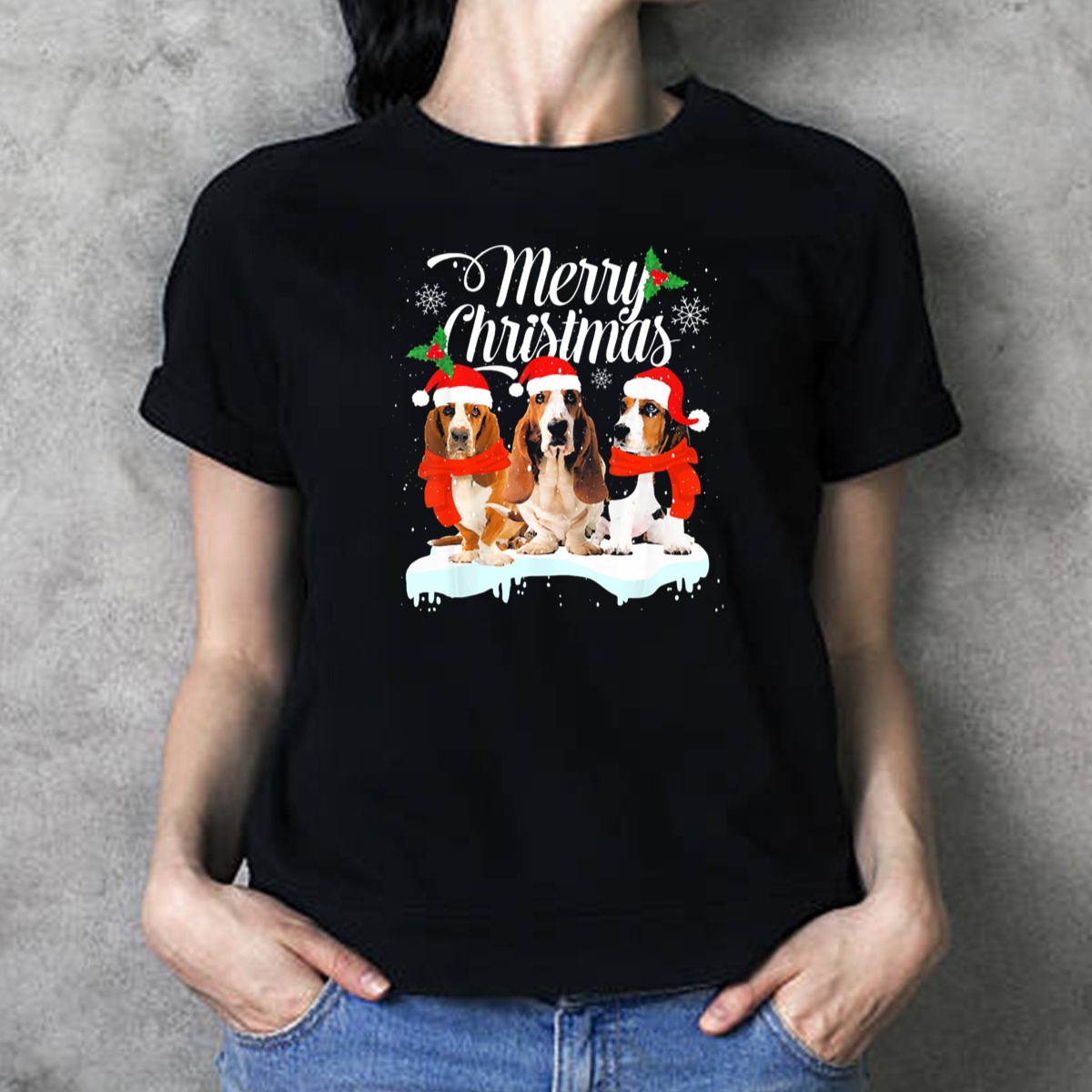 Celebrate the festive season in style with our Merry Christmas Basset Hound T-Shirt, featuring an adorable design of a basset hound wearing a Santa hat surrounded by whimsical snowflakes. Perfect for dog lovers and holiday enthusiasts alike, this shirt is your go-to choice for casual wear, themed events, or simply spreading holiday cheer every day. Made with care in the USA, this fan-made design adds a unique touch to your seasonal wardrobe.