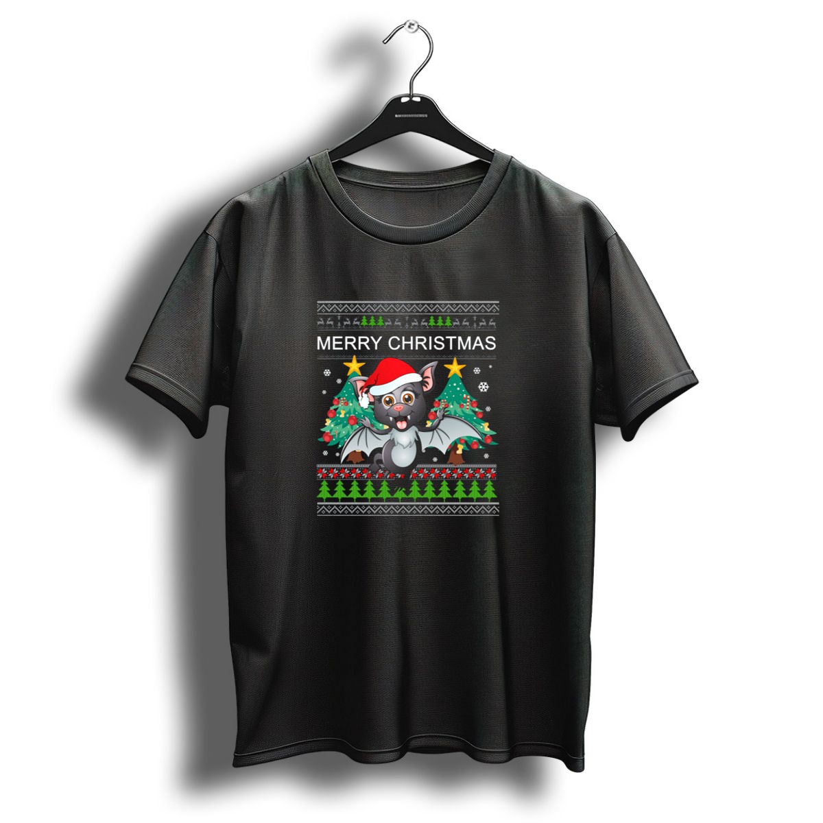 Celebrate the festive season in style with our Merry Christmas Bat Santa Hat T-Shirt! Perfect for those who love to combine holiday cheer with a touch of whimsy, this shirt features a unique fan-made design that showcases playful bats wearing Santa hats amidst festive trees, stars, and snowflakes. Ideal for casual wear, themed events, or just spreading holiday joy, this shirt is a must-have for anyone looking to make a statement during the most wonderful time of the year. Plus, it’s proudly printed in the USA for a quality you can trust!