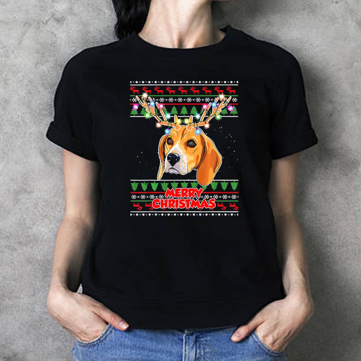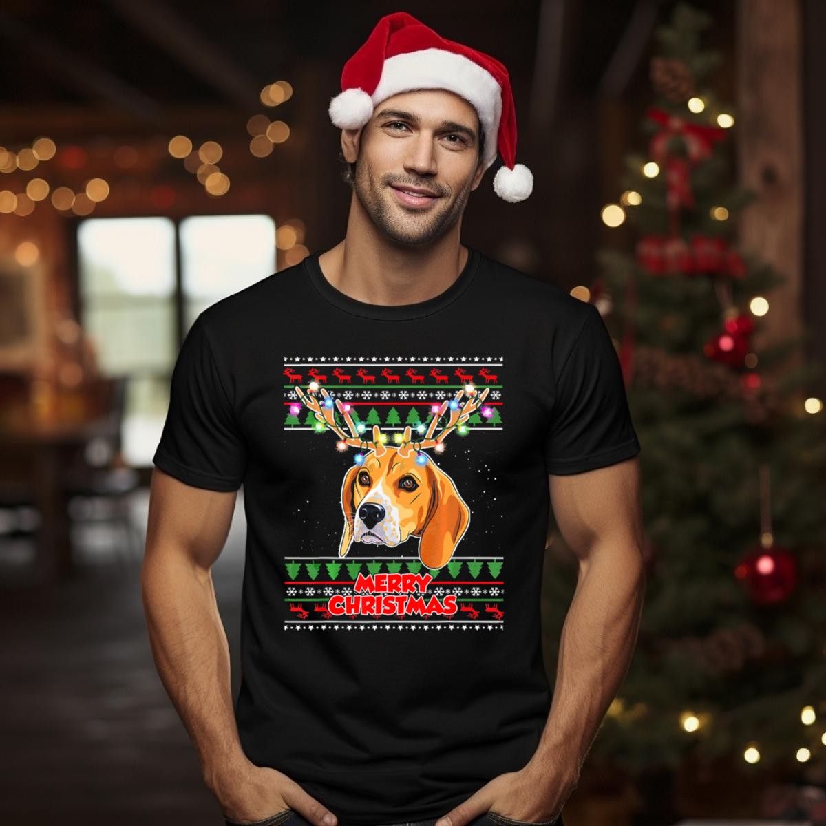 Celebrate the festive season with our Merry Christmas Beagle T-Shirt, perfect for dog lovers and holiday enthusiasts alike! Featuring a charming beagle adorned with antler lights amidst a backdrop of snowflakes and trees, this shirt is an ideal choice for casual wear, themed events, or simply spreading holiday cheer in your daily life. Made with a fan-made design printed right here in the USA, this shirt combines comfort and style for all your Christmas gatherings.