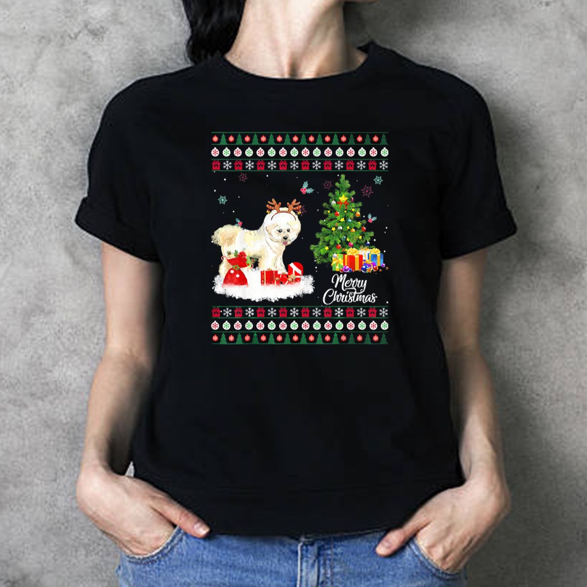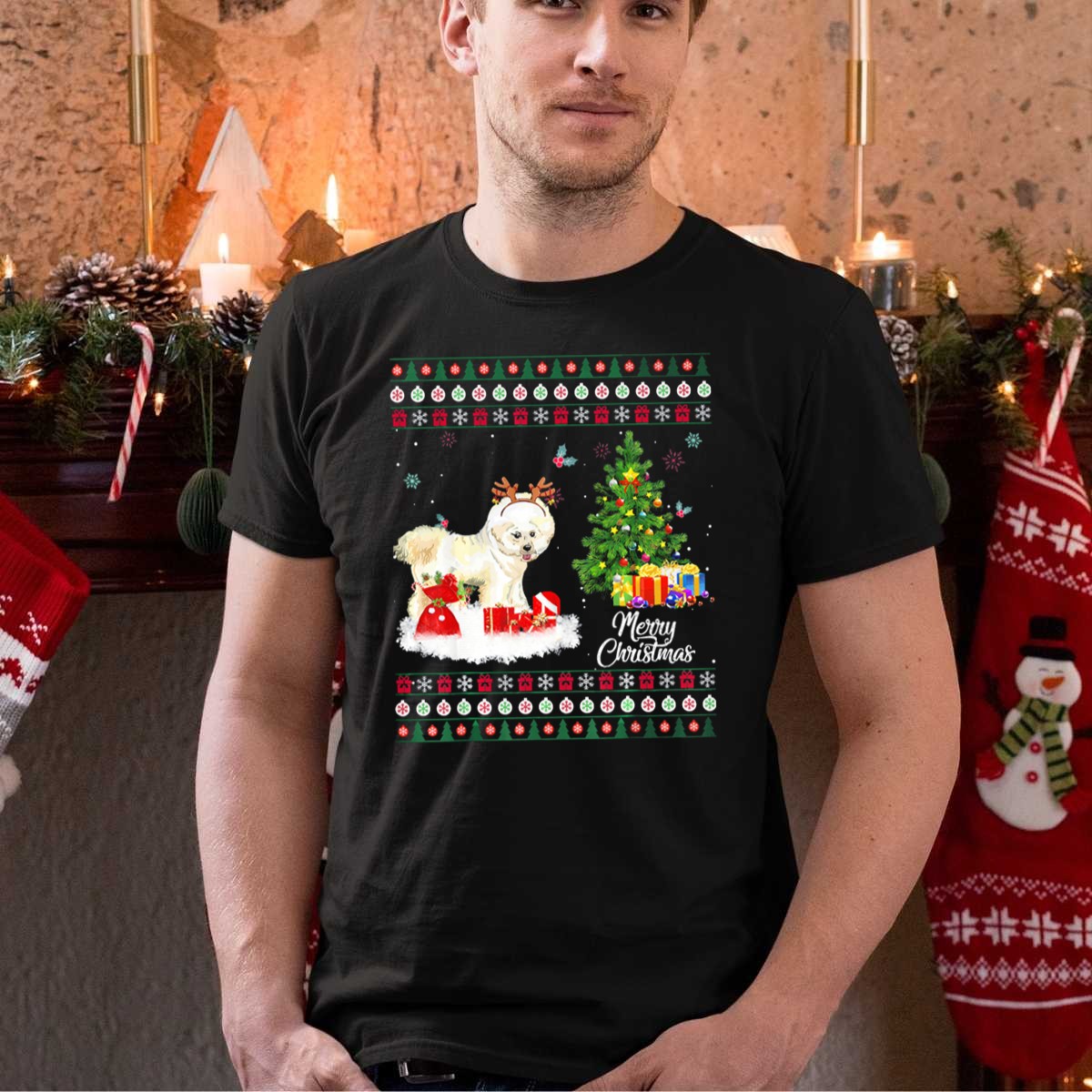 Celebrate the holiday season with a touch of humor and style in our Merry Christmas Bichon Frise Funny Reindeer With Gifts And Tree T-Shirt! Perfect for dog lovers and Bichon Frise enthusiasts, this playful tee is ideal for casual wear, themed events, or simply spreading festive cheer. Made with a unique fan-made design and printed in the USA, it’s a fun addition to your wardrobe that showcases your love for your furry friend and the joy of the season.