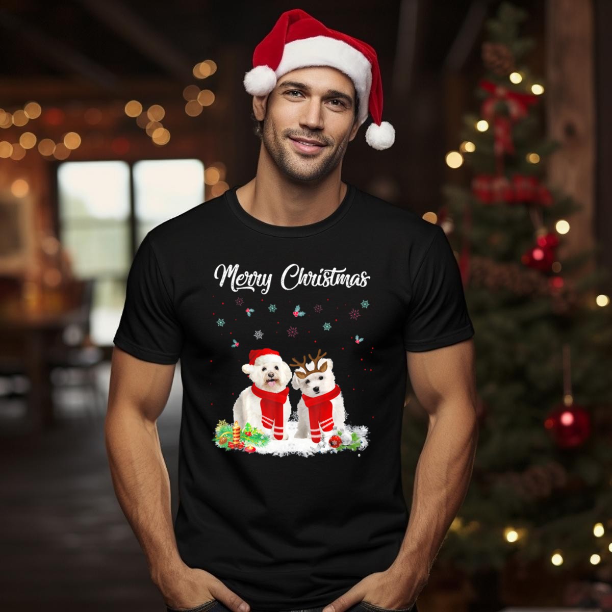 Celebrate the festive season in style with our Merry Christmas Bichon Frise Santa And Reindeer Dogs T-Shirt! Perfect for dog lovers and holiday enthusiasts, this fun and whimsical design captures the joy of Christmas with adorable Bichon Frise pups dressed as Santa and reindeer. Whether you’re attending a holiday party, cozying up at home, or enjoying a themed event, this shirt will keep you looking cheerful and festive throughout the season. Made with care in the USA, it’s a unique addition to your holiday wardrobe!